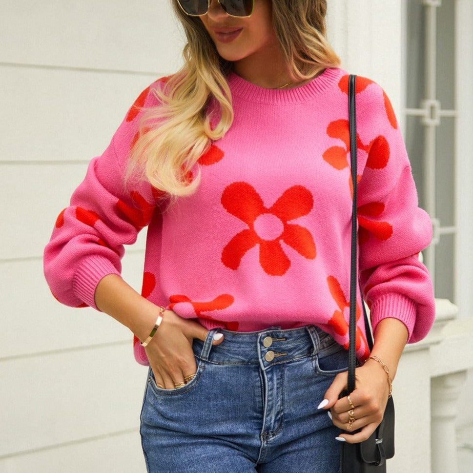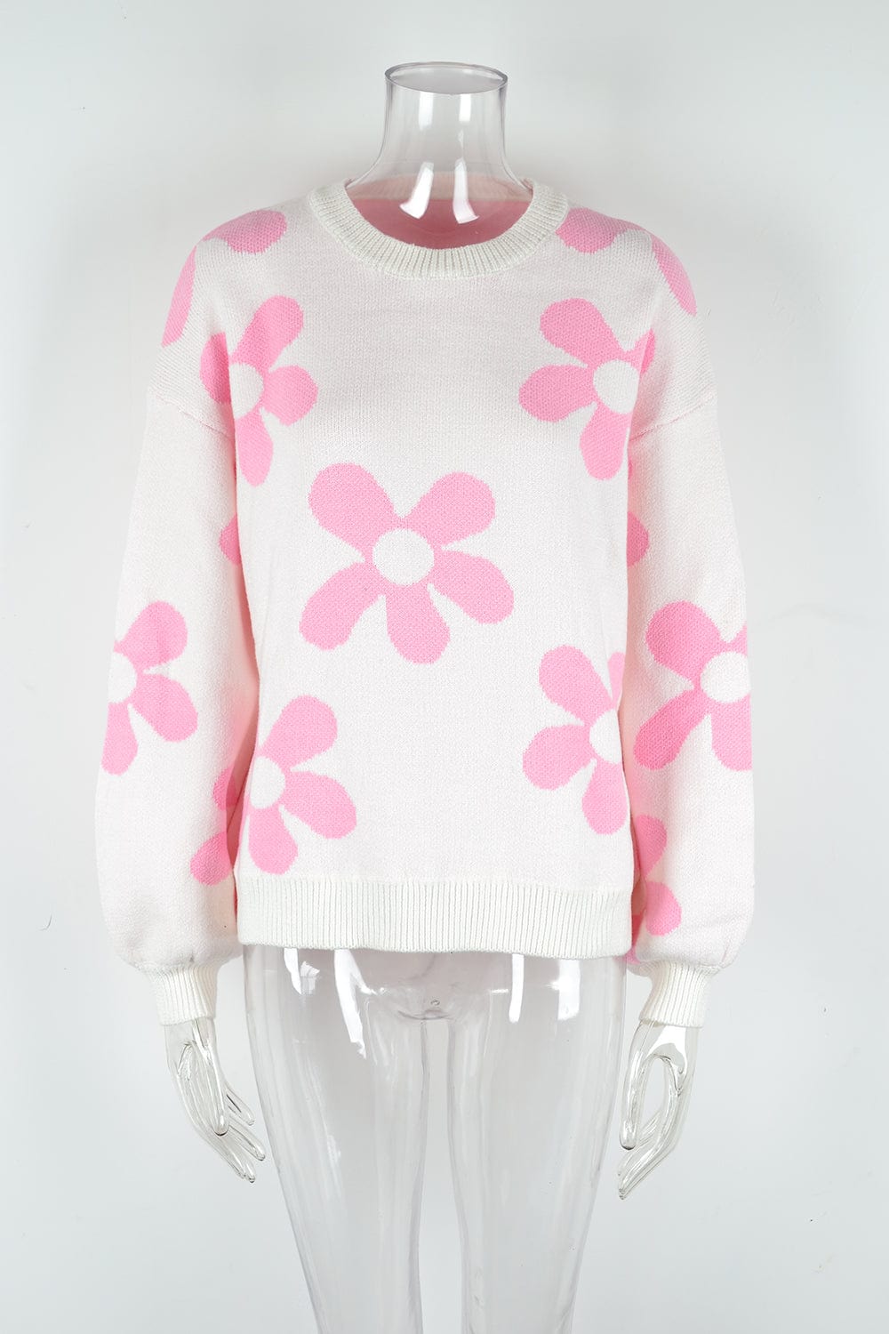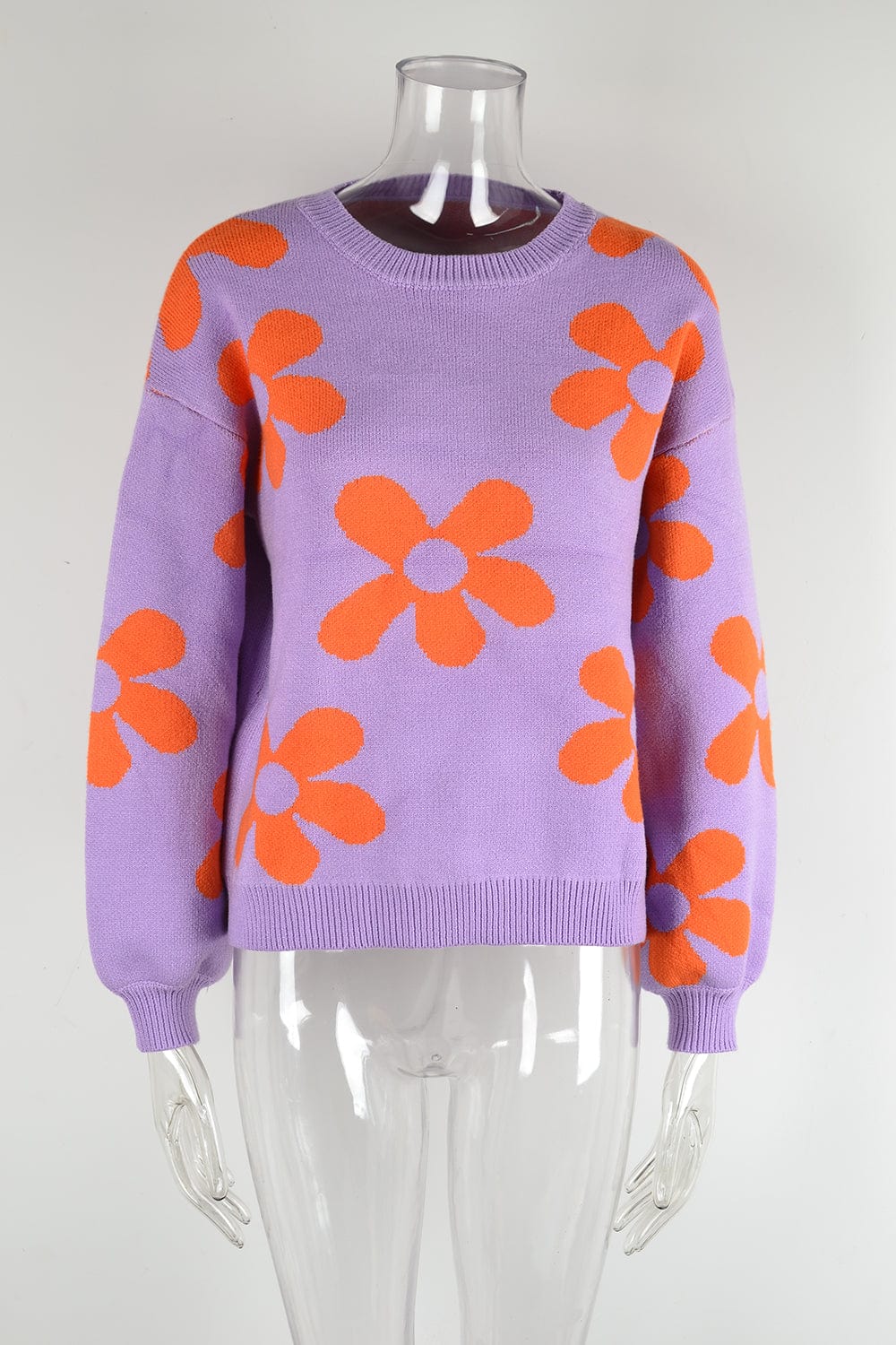 Stay breezy and feminine in the Melani Sweater! This lightweight jersey fabric features a unique floral jacquard pattern. perfect for adding some pizzazz to your wardrobe. Get cozy in the loose fit. crew neck. and long sleeves. Swing into the spring season with this acrylic sweater!