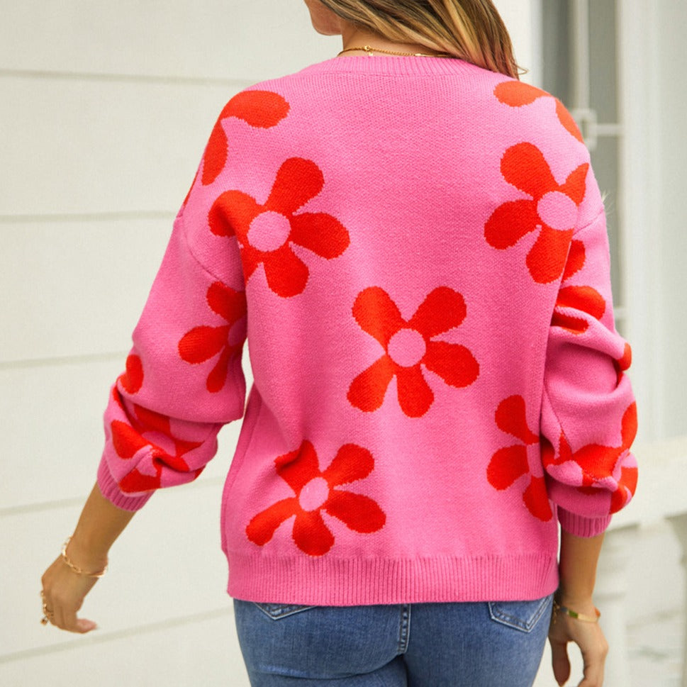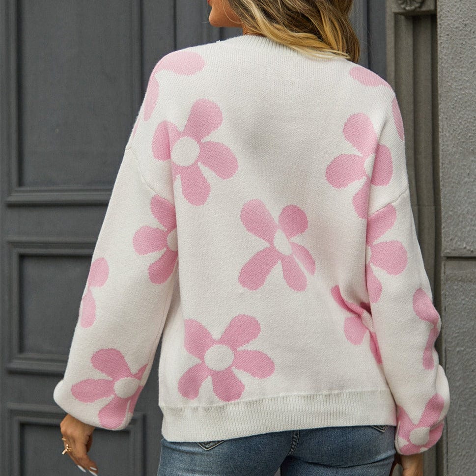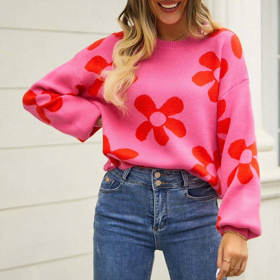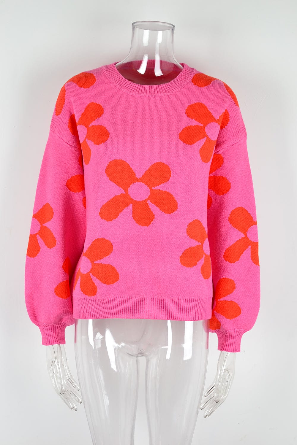 Stay breezy and feminine in the Melani Sweater! This lightweight jersey fabric features a unique floral jacquard pattern. perfect for adding some pizzazz to your wardrobe. Get cozy in the loose fit. crew neck. and long sleeves. Swing into the spring season with this acrylic sweater!