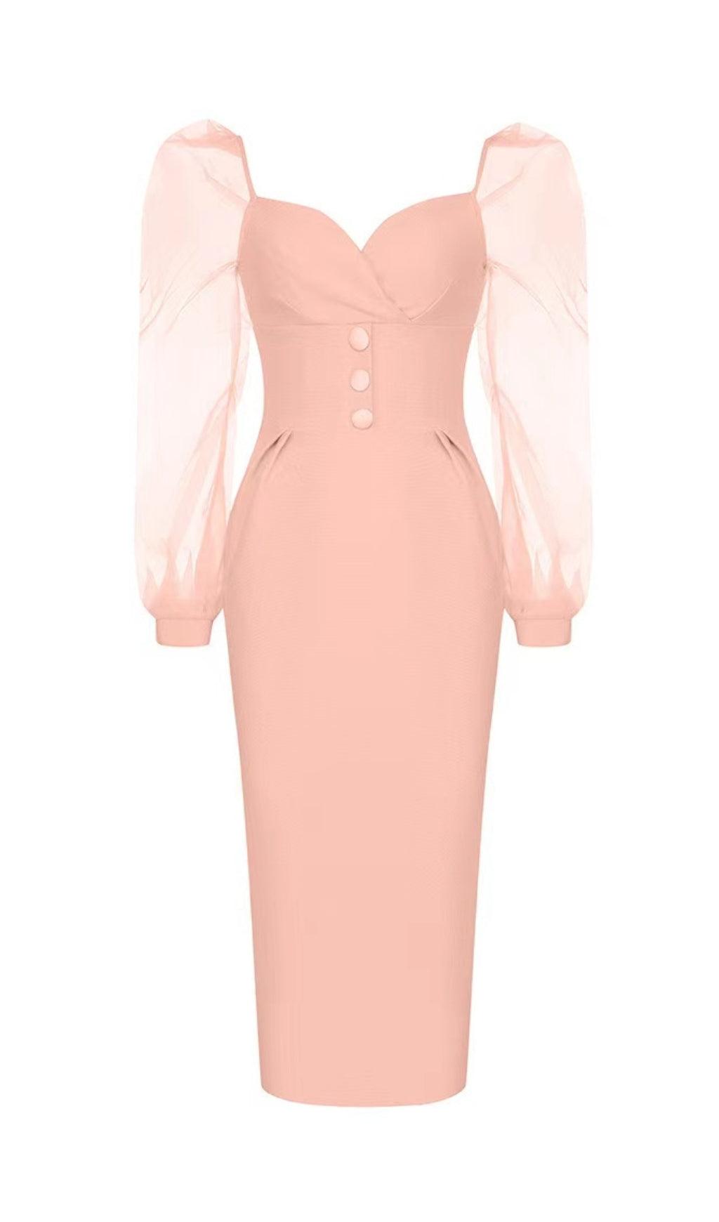 Turn heads in this bodycon midi dress embellished with intricate pink floral embroidery. Sheer mesh panels sleeve reveal alluring glimpses of skin. Feel sexy and sophisticated in this scene-stealing stunner.