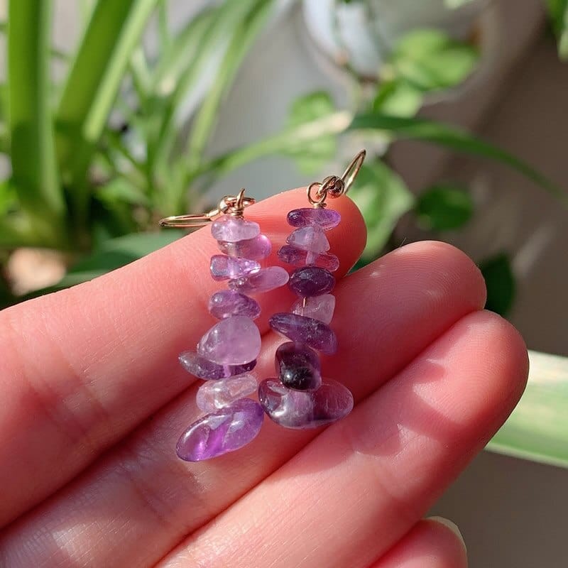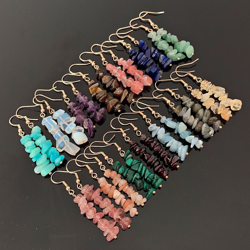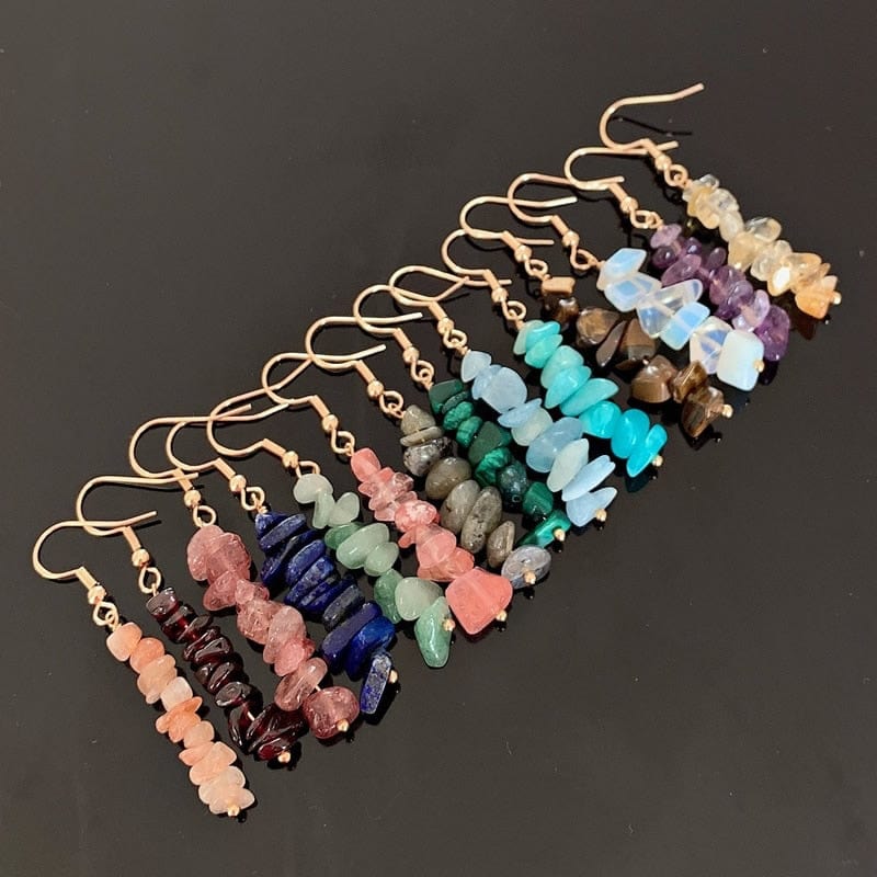 A pair of handmade Natural Crystal Gravel Chips Earrings. Each is a unique gemstone with a story of its own. They are small enough to be worn every day but large enough to make a statement.