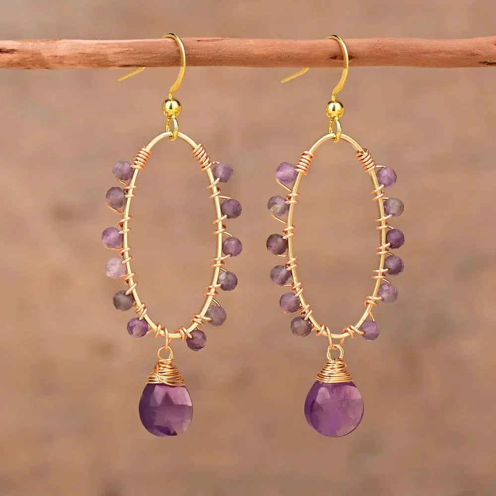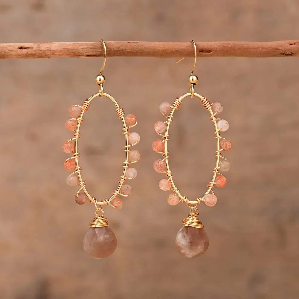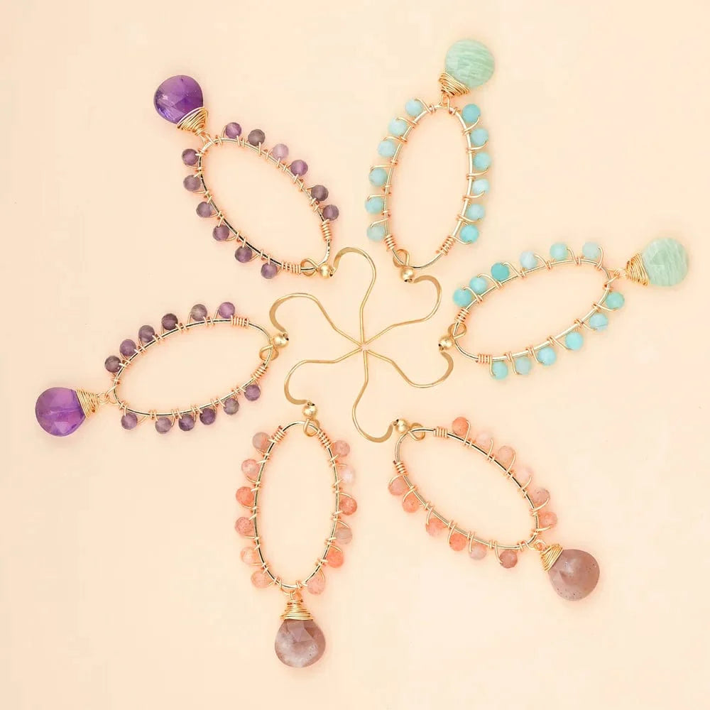 These Natural Stone Bohemian Earrings are a perfect accessory for any outfit. Crafted with gold-plated wire and available in amazonite. amethyst. and sunstone. these earrings are the perfect way to add a stylish and versatile bohemian touch to your look.