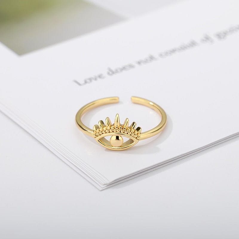 Introducing the Nazar Eye Ring. a stunning bohemian accessory that offers both style and protection. The Nazar Eye. also known as the Evil Eye. is an ancient amulet believed to ward off negative energy and protect the wearer from harm. This exquisite ring features a bold and intricate design. with a striking Nazar Eye set in the center. The ring is crafted from high-quality materials. ensuring its durability and longevity.
