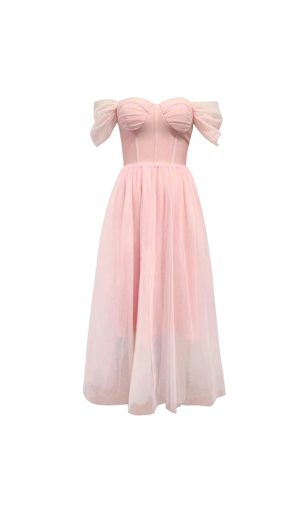 The flattering A-line silhouette and off-shoulder neckline create a feminine and elegant look. The corset design adds a touch of sophistication. while the midi length adds a modern twist. Stand out in pink and feel confident and empowered in this versatile dress!