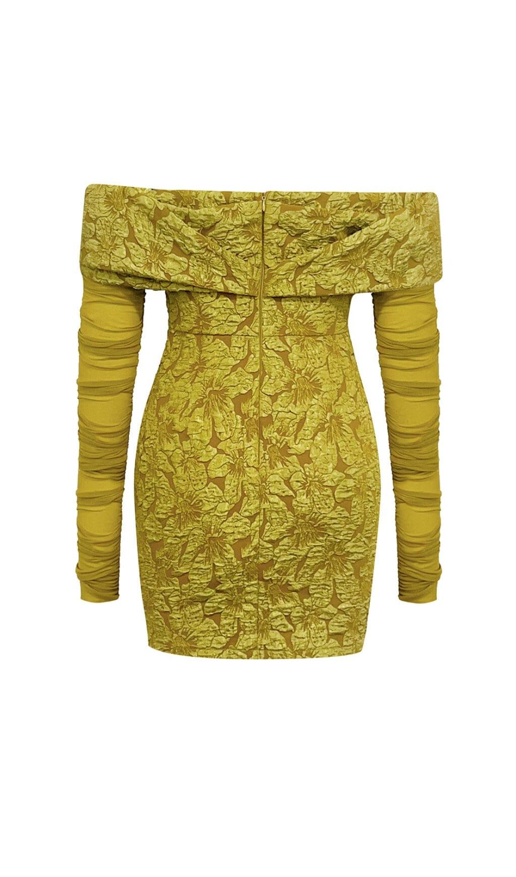 This TURMERIC COLOR OFF SHOULDER MESH FLORAL LONG-SLEEVED MINI DRESS is a sassy little number that's perfect for showing off your style! With a mesh floral pattern and long sleeves. it's guaranteed to turn some heads and leave you feeling fabulous. Slip it on and strut your stuff with confidence!