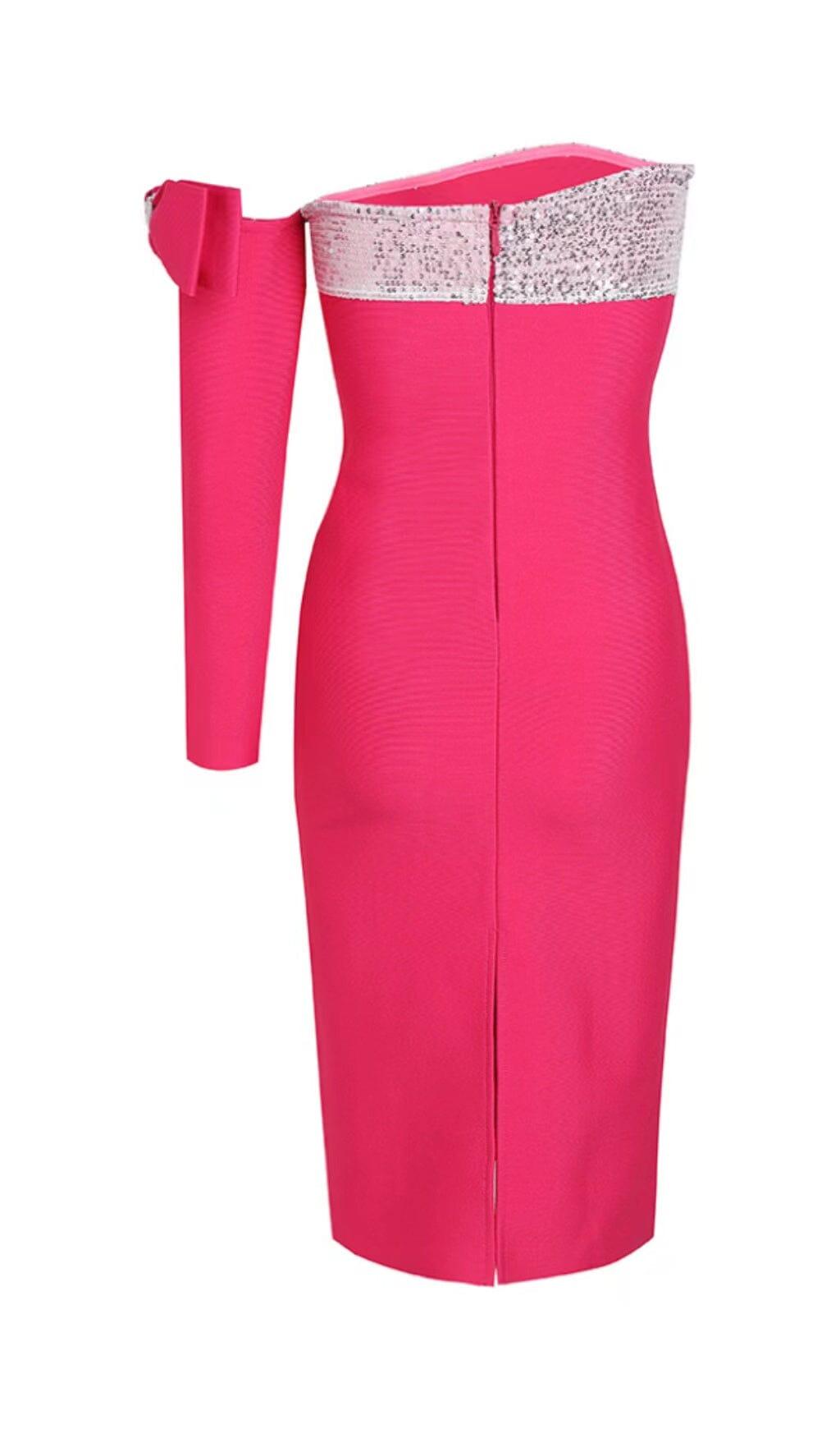 Elevate your style and make a statement with our one-line shoulder dress in peach pink. Order yours today and be the center of attention at your next special event!