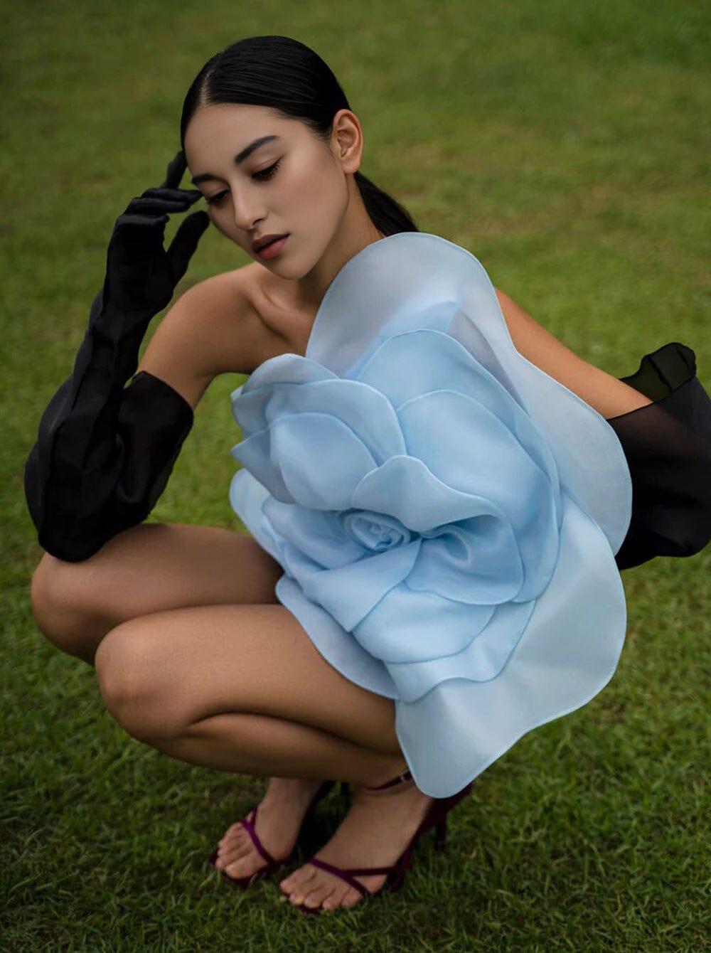 Elevate your style with our One Shoulder Flower Mini Dress in Blue. Its exquisite floral design. unique one shoulder detail. and high-quality construction make it a standout choice for those who want to make a statement. Whether you're attending a wedding. a cocktail party. or any special occasion. this dress will ensure you look and feel your best.
