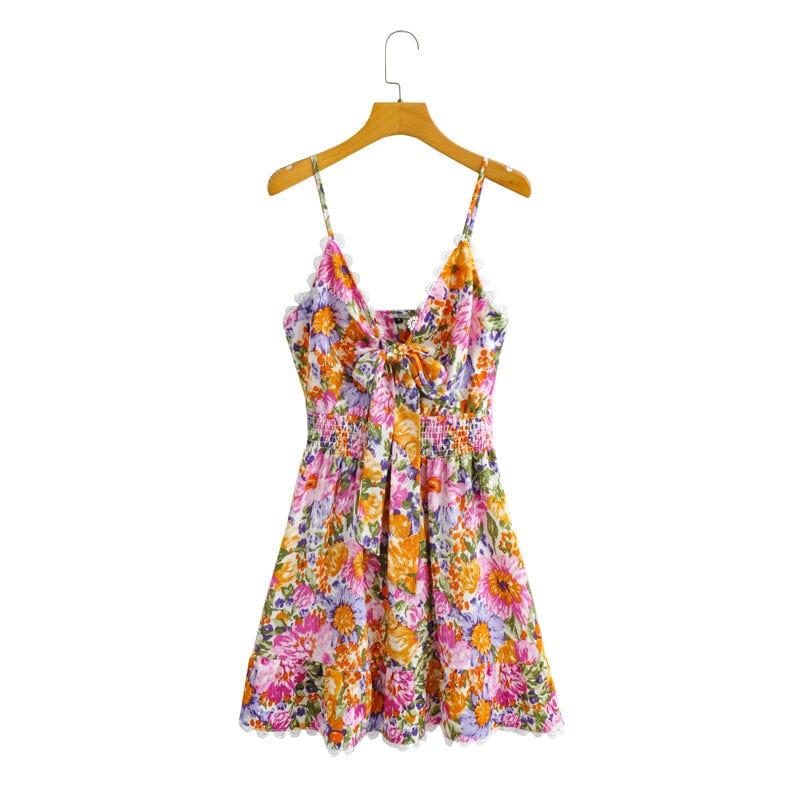 Turn heads in our Ophelia Boho Mini Dress! With a floral print made to stand out and adjustable straps to keep you comfy. this dress looks good and feels even better. The V-neck is decorated with a bow and lace details for a look that is both chic and flirty. Plus. the elasticized hem provides just the right amounts of snugness and flair! Get ready for the compliments to come rolling in.