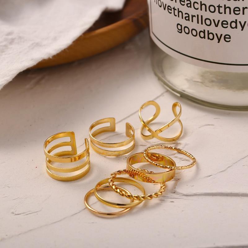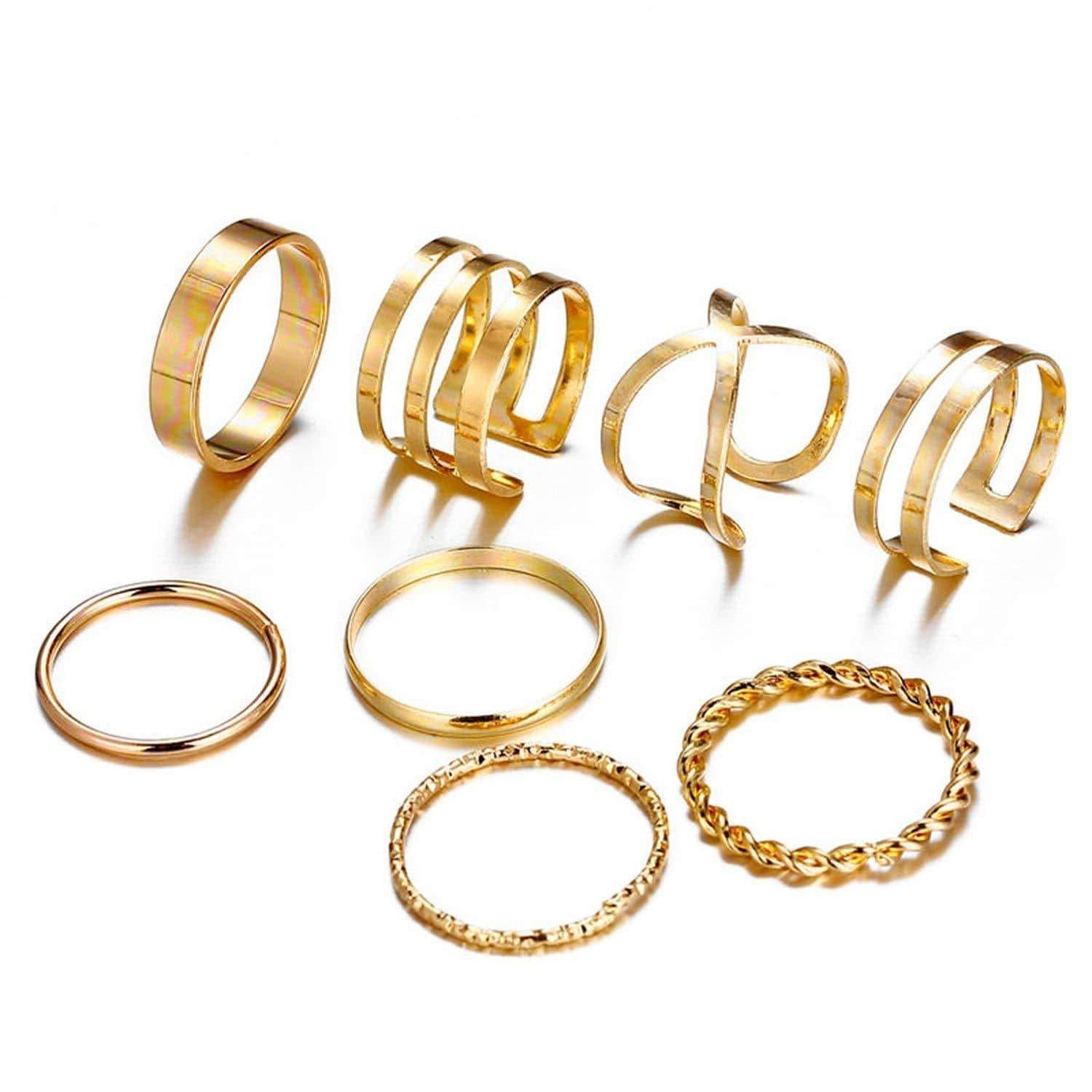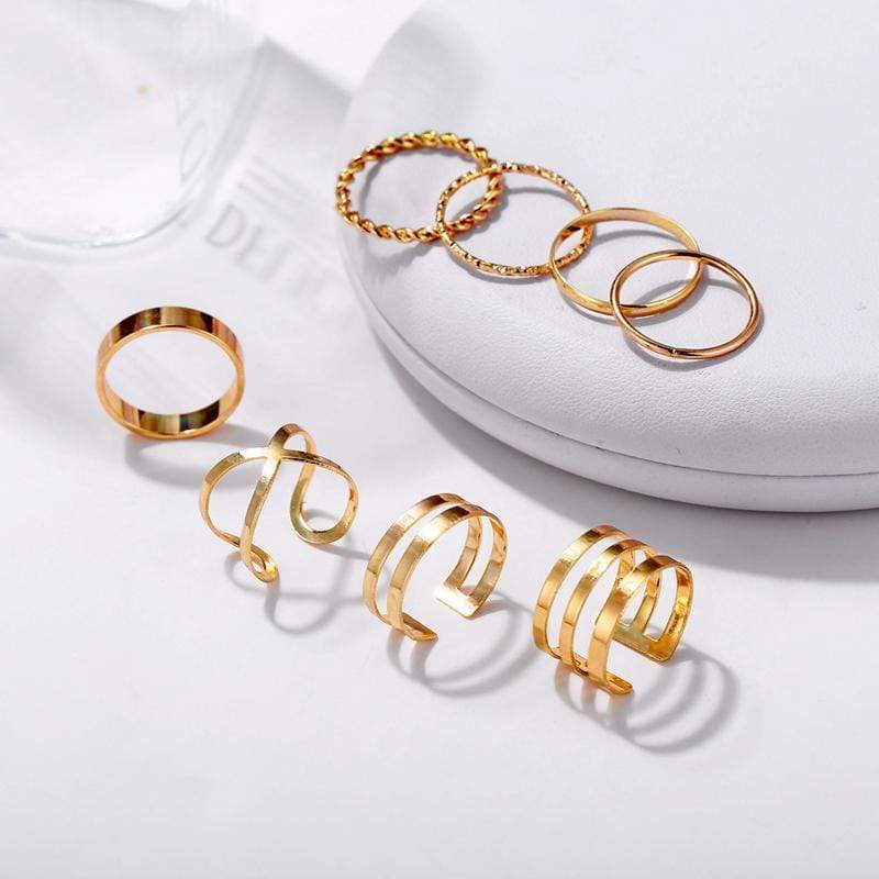 Pack of 8 Rings with Twist Details and Engraved Designs