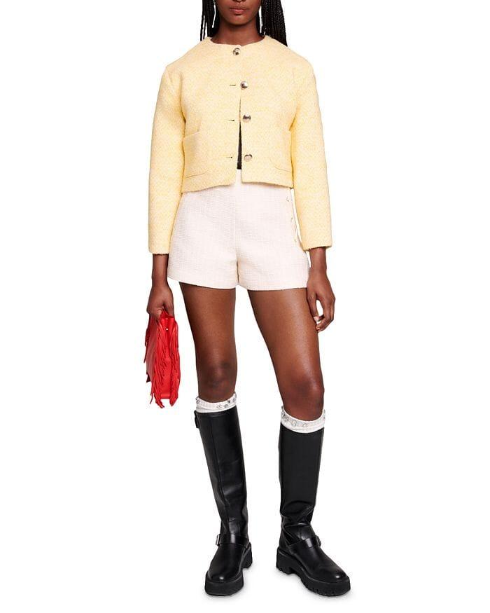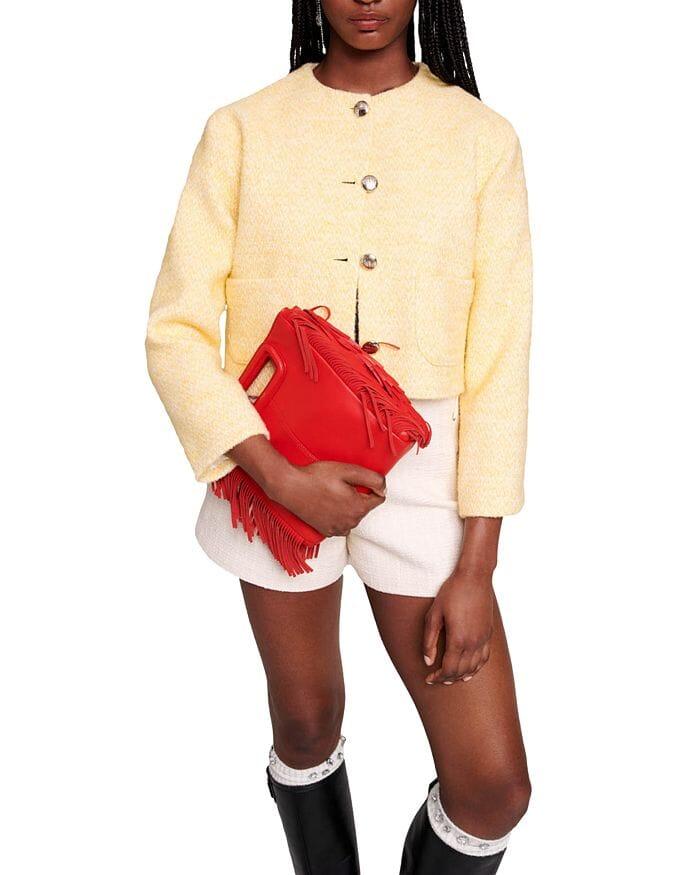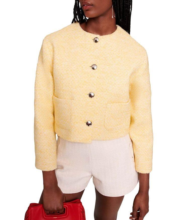 Made with high-quality tweed. this jacket exudes boldness and adventure. Its pale yellow color adds a touch of unique flair to any outfit. Perfect for those who like to take risks and stand out from the crowd. Don't settle for ordinary. choose this jacket and make a statement today!"