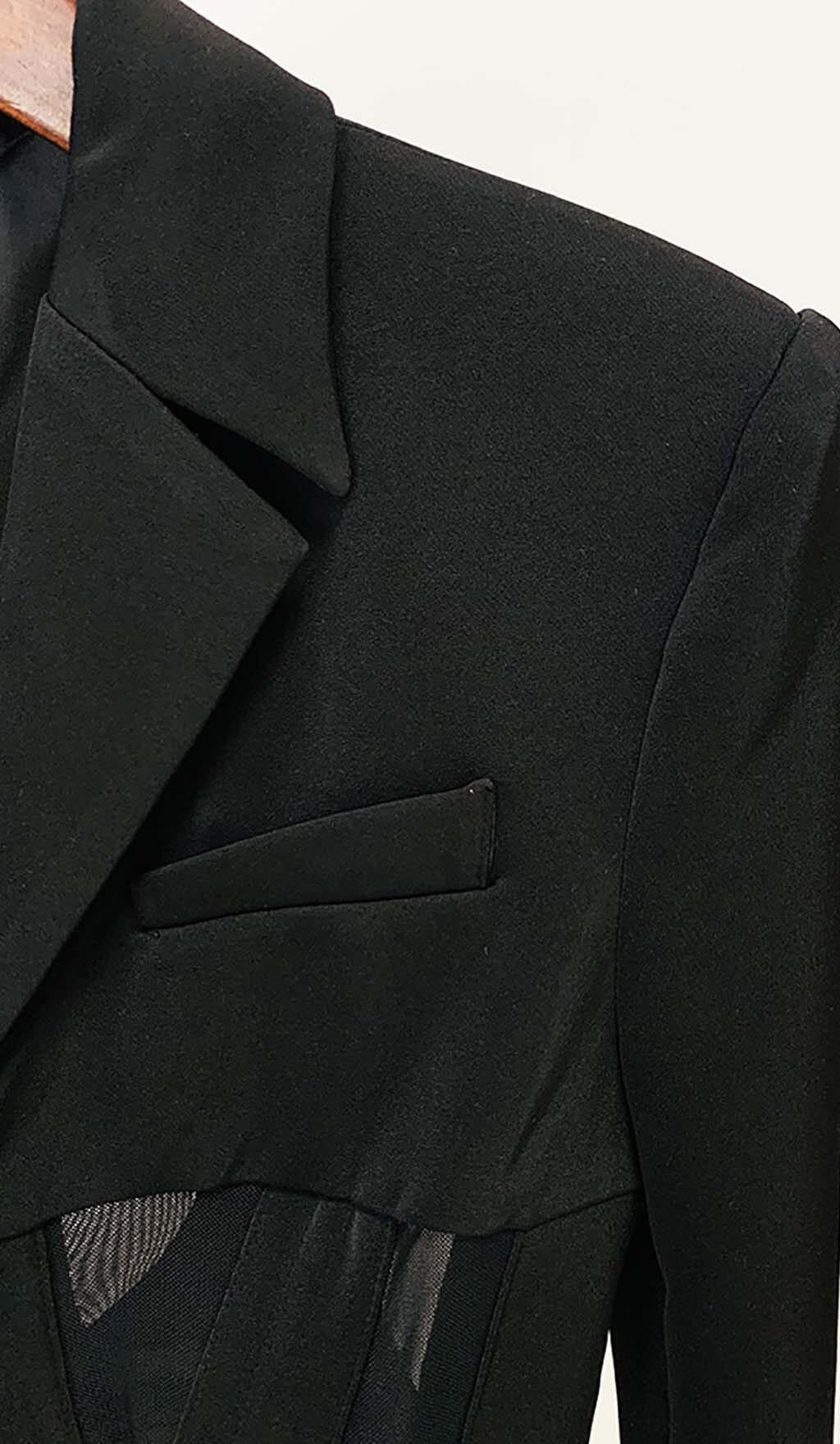 PANELED PERSPECTIVE JACKET SUIT IN BLACK