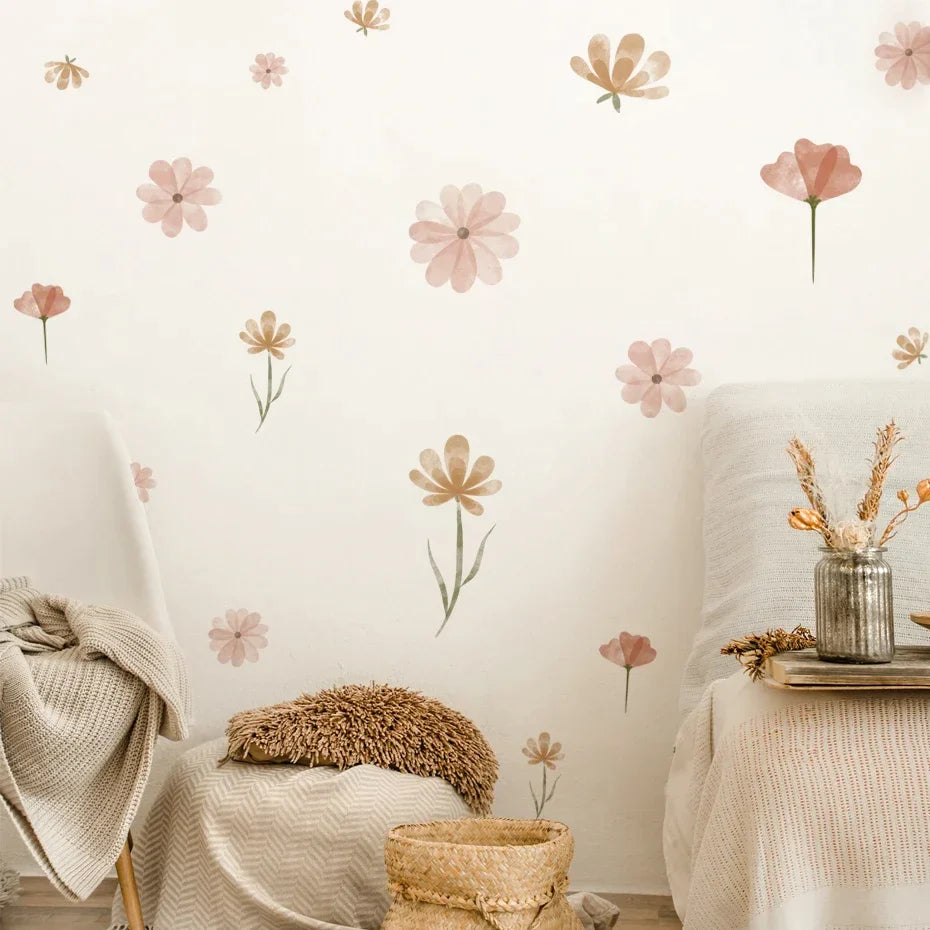 Indulge in the boho flower trend with our Pastel Flowers Wall Decal Set! These muted color decals are made with high-quality. removable vinyl that won't leave any residue on your walls. Easy to apply and remove. they'll add a touch of whimsy to any smooth. clean surface.
