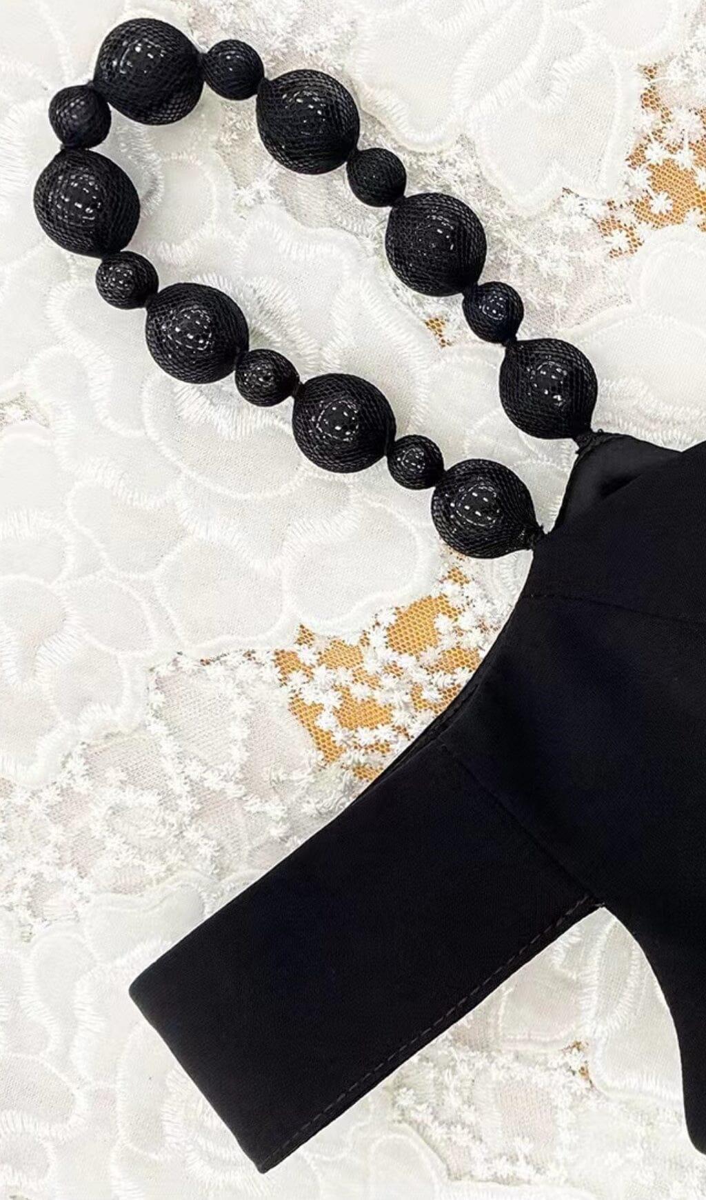 PEARL STRAP MIDI DRESS IN BLACK