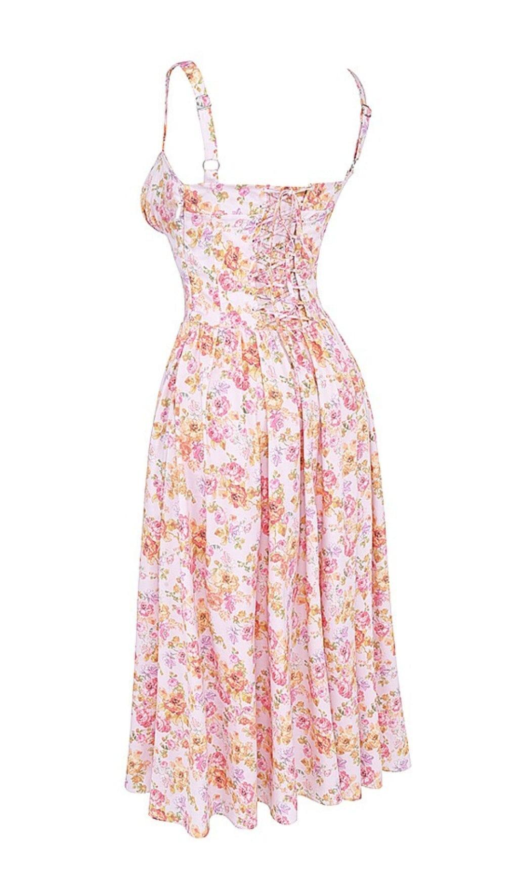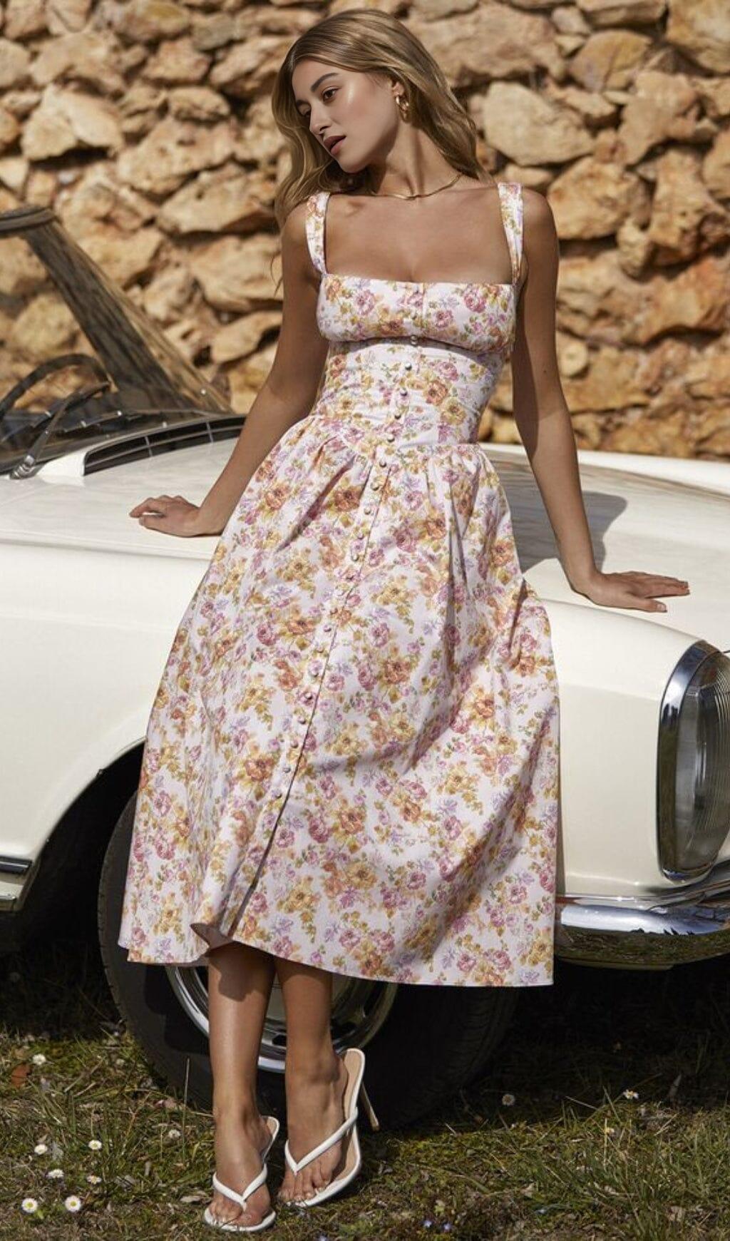 We're loving how the floral prints stand out this season for their beautiful colours and lifelike details. Decorated with pretty blooms. the PINK PRINT MIDI SUNDRESS has a vintage feel and is beautifully cut from stretch cotton.