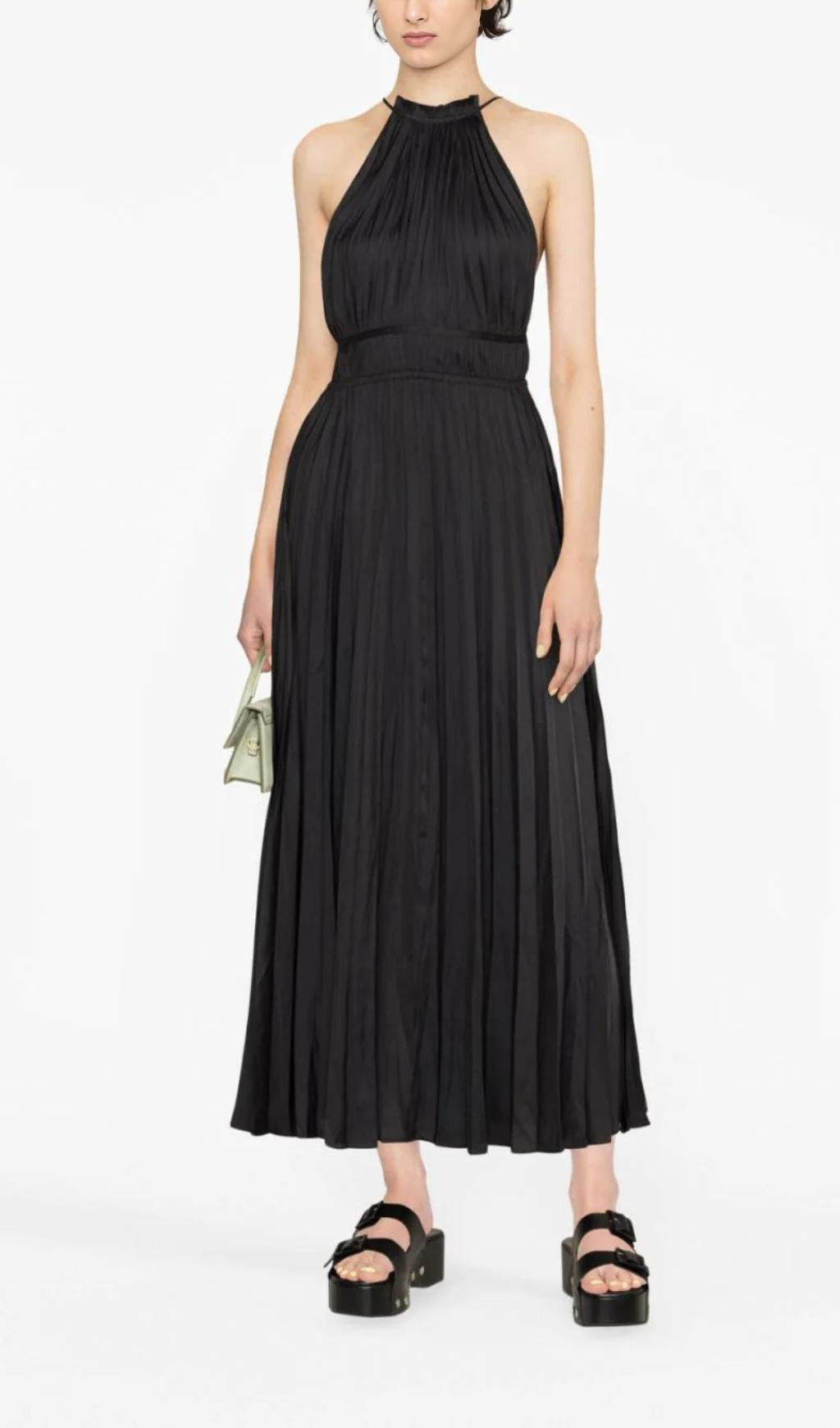 Flowing and elegant. this dress features soft pleats that create a flattering silhouette. Perfect for any occasion. this maxi dress will make you feel confident and stylish while capturing the attention of all those around you!