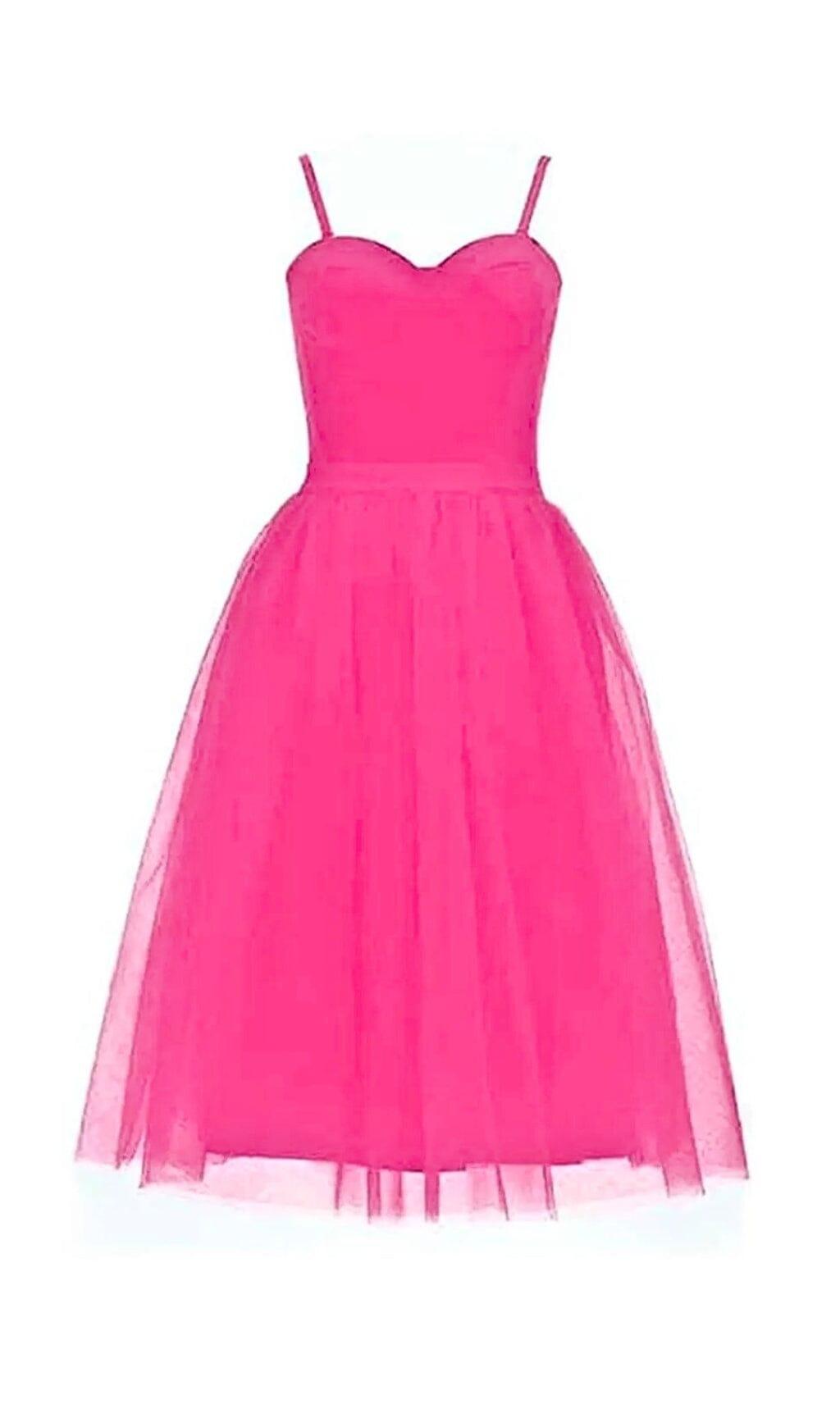 With our Pleats Spaghetti Straps Midi Dress in Hot Pink. you can feel confident. chic. and ready to make a statement. Order now and be the best-dressed at your next event!