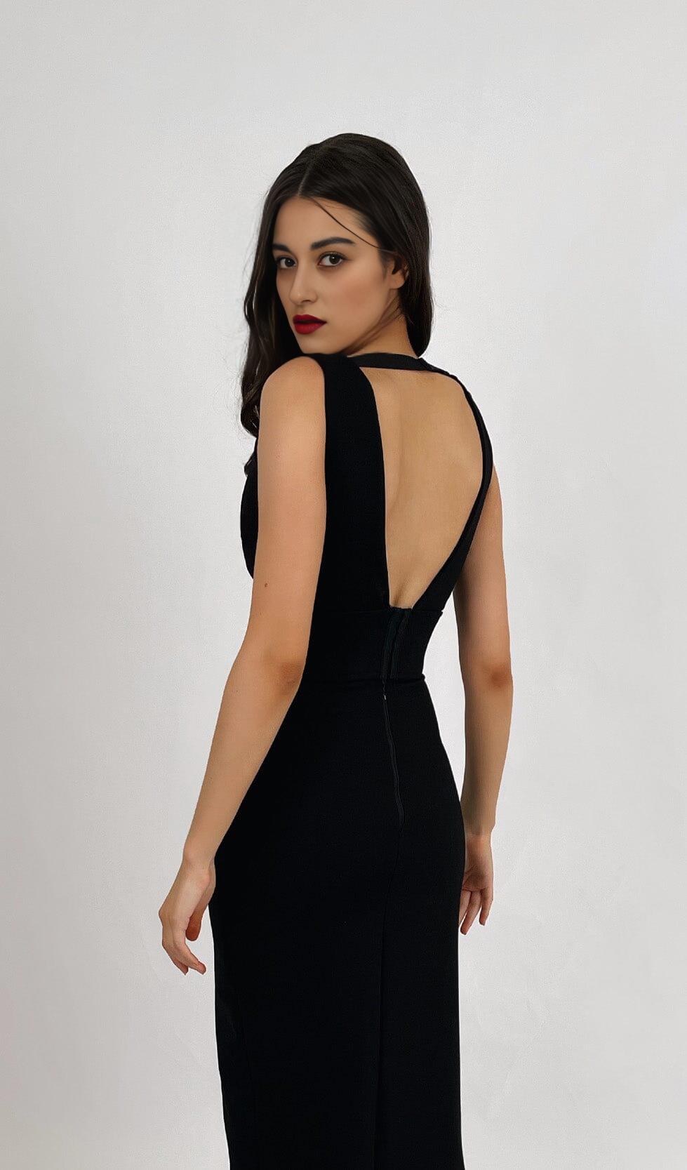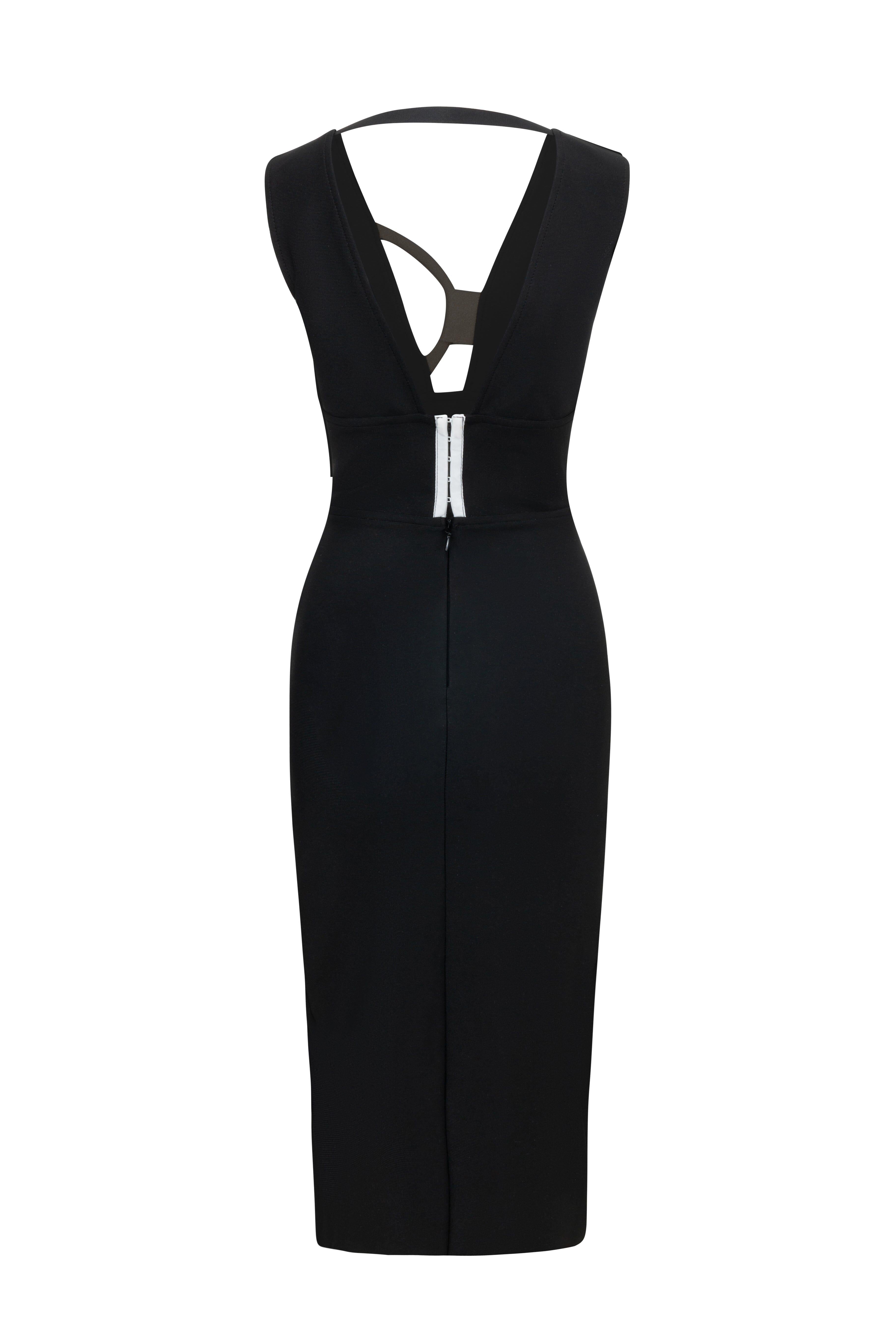 Step out in style with our stunning plunge neck midi dress! Perfect for any club event or formal occasion. this dress features a flattering silhouette that accentuates your curves. The plunge neckline adds a touch of sensuality. while the midi length keeps it classy and sophisticated. Made with high-quality fabric. this dress is comfortable to wear all night long.