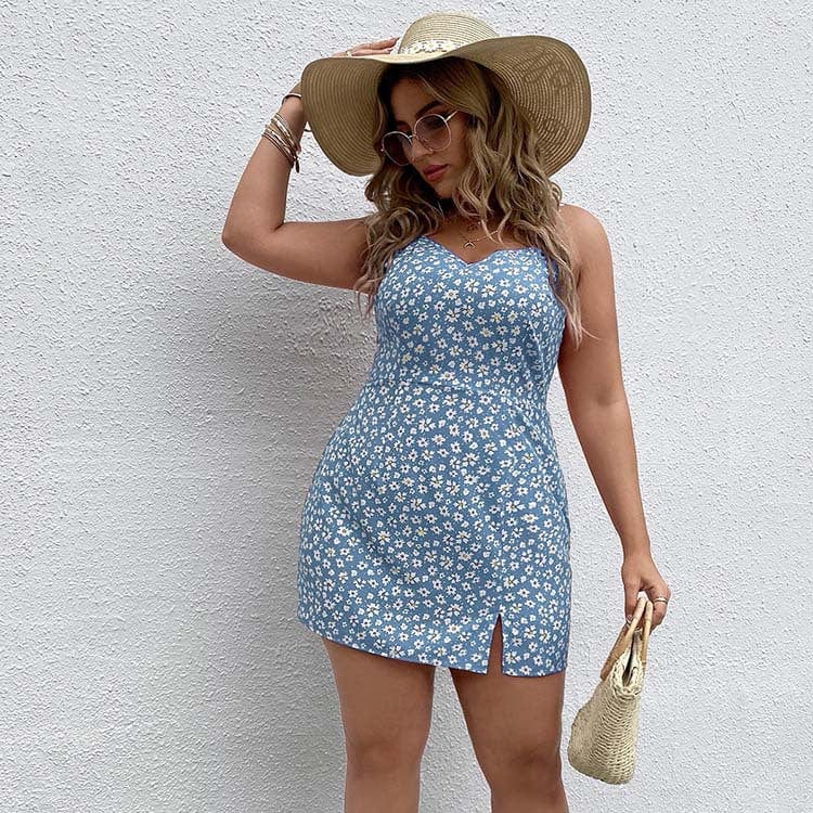 Be bold and beautiful in our Plus Size Talitha Mini Dress. Made with a slim fit and soft polyester fabric. this fashionable mini dress is adorned with a delightful floral pattern and split element to make sure you turn heads! Boasting a flattering V-neck neckline and spaghetti straps. this bodycon dress is sure to keep you short and sweet.
