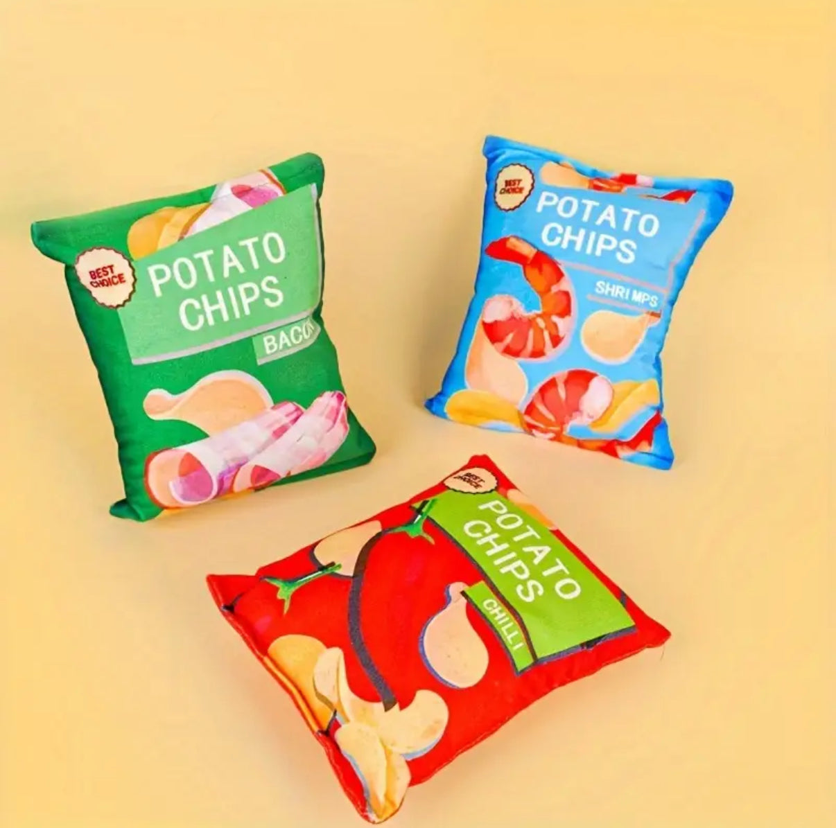 Introducing the Plush Potato Chip Dog Toy. the perfect blend of fun and durability for your furry friend. Designed for small and medium-sized dogs. this aesthetic dog toy features a bite-resistant plush exterior and an engaging squeaky sound with sounding paper inside. making playtime more exciting. The unique crisps-inspired design is not only adorable but also stimulates your pet's curiosity and keeps them entertained for hours. Ideal for corgis. teddy dogs. and other small breeds. this funny dog toy helps support healthy chewing habits while protecting your furniture.