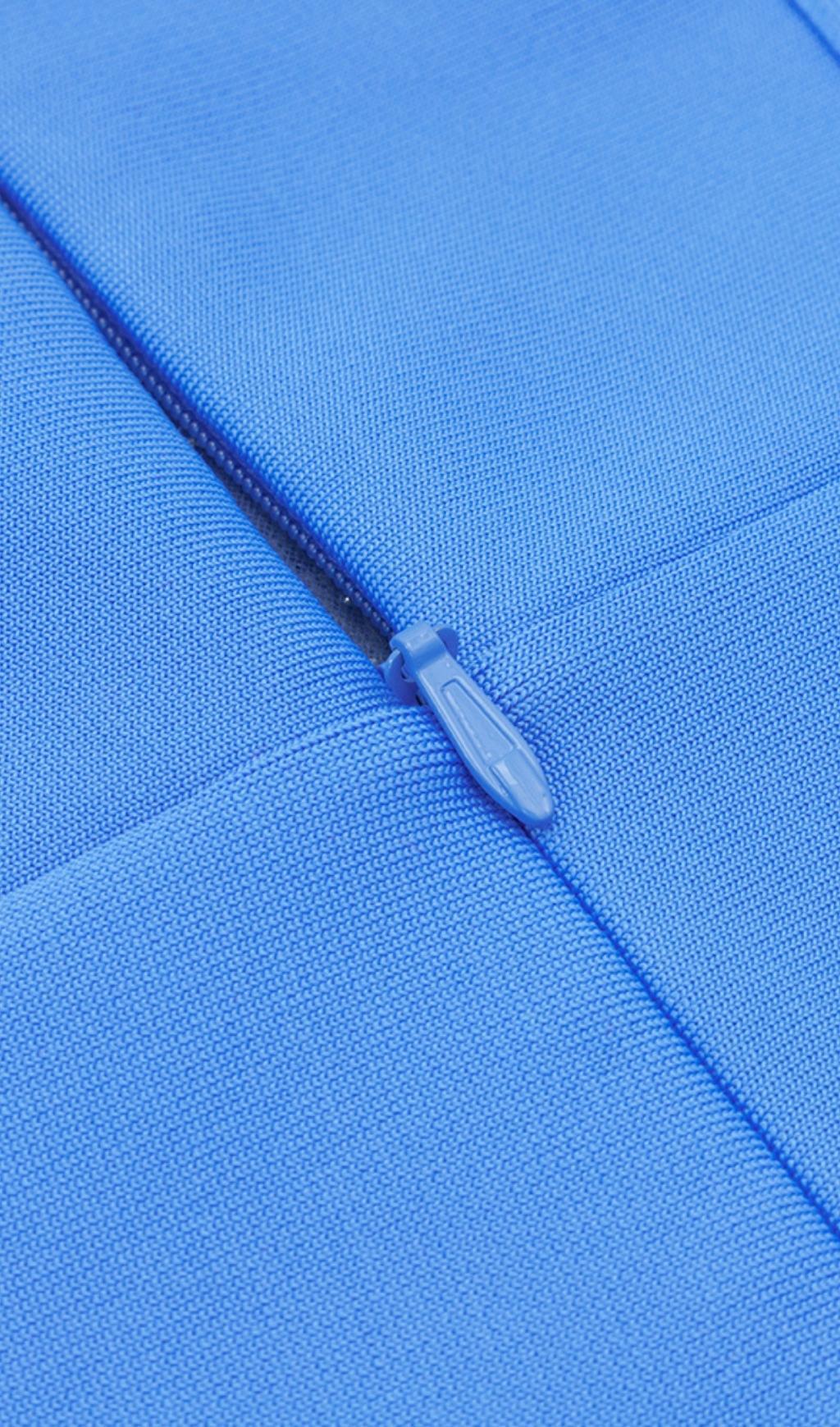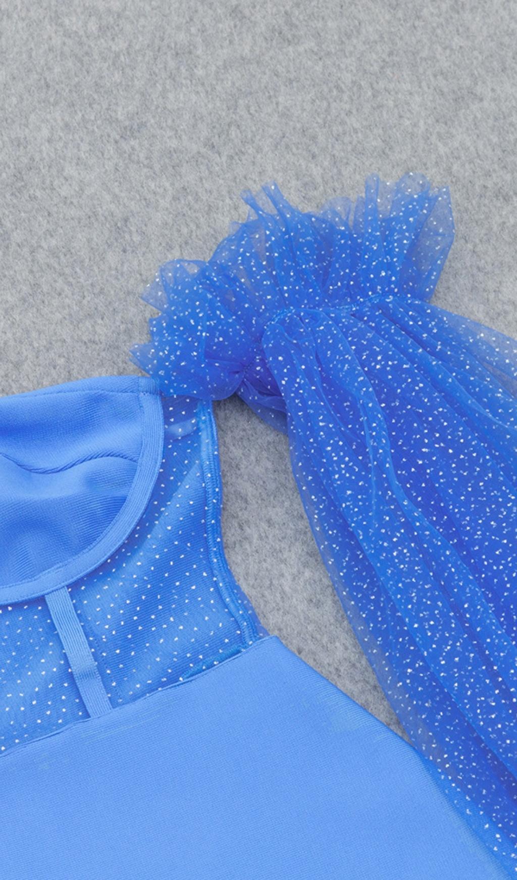 Introducing our Puff Sleeve Bodycon Midi Dress in Blue. a fun and flirty dress perfect for a romantic date night. The puffed sleeves create a flattering and tight-fitting design that accentuates the waist. This dress is fully lined for comfortable wear and features a convenient zip back for easy dressing.