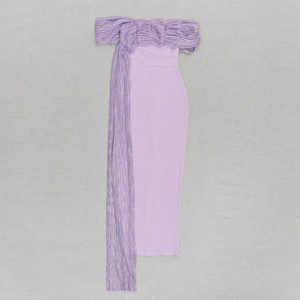Dress to impress in this sophisticated one-shoulder maxi dress. Crafted from the finest satin fabric in a glossy purple hue. this timeless piece features dramatic right dropped sleeves for a stunning silhouette. The perfect addition to your luxury wardrobe.