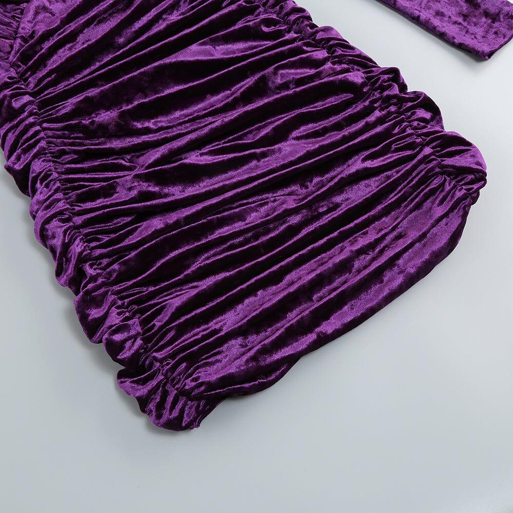 Look glamorous in this Purple V Neck Ruched Velvet Mini Dress. Luxurious velvet fabric and figure-flattering ruching make this a show-stopping look that will have all eyes on you! Turn heads in this must-have dress!