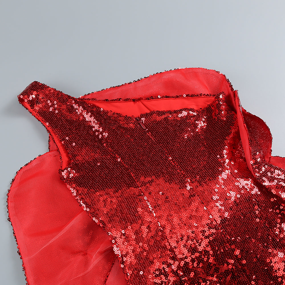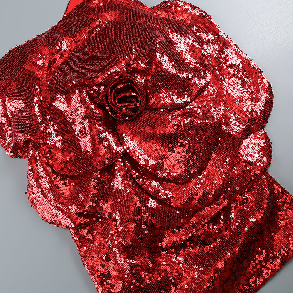 This dress is adorned with intricate floral embellishments and shimmering sequins. making it a show-stopping piece for any event. Stand out and exude confidence with this unique and eye-catching dress.