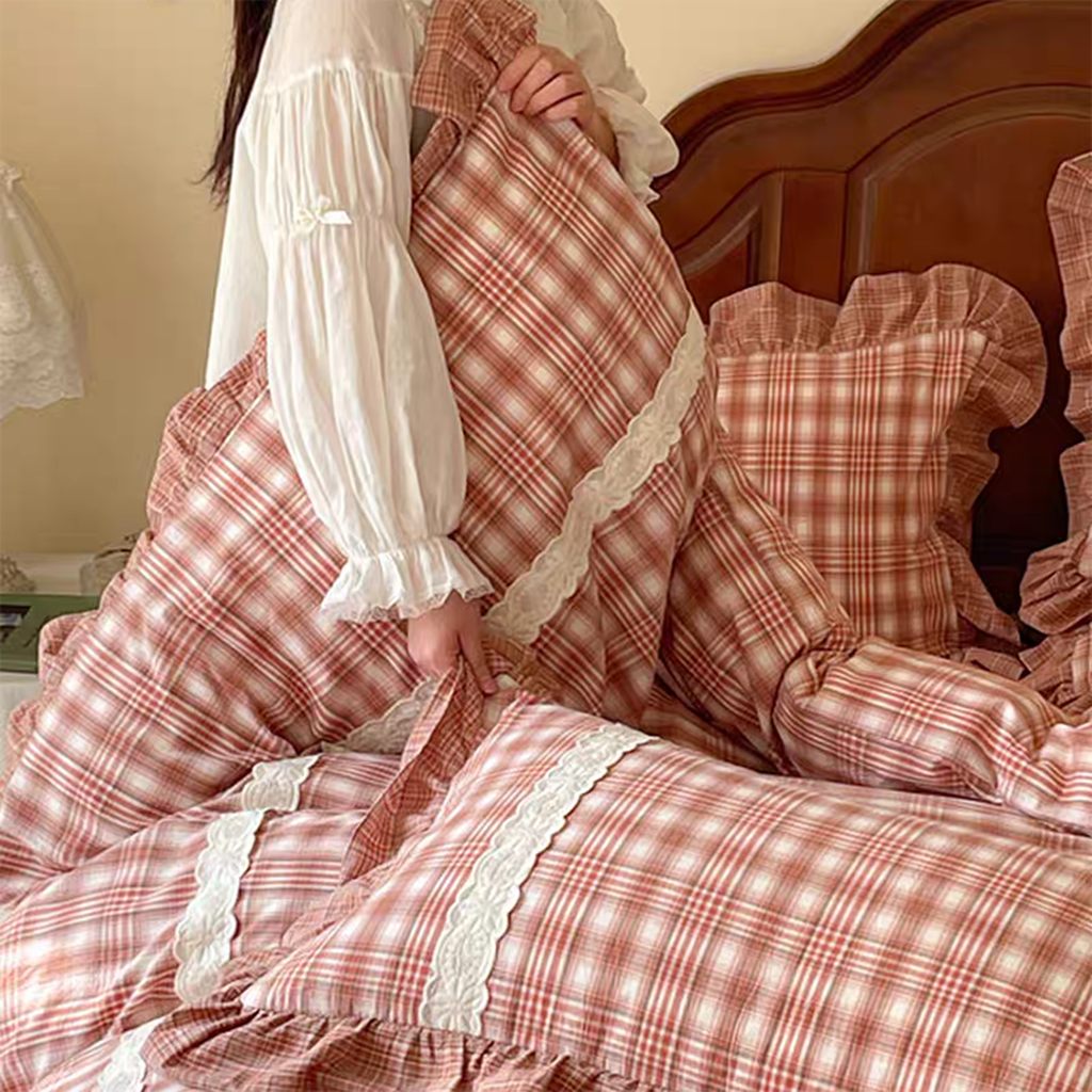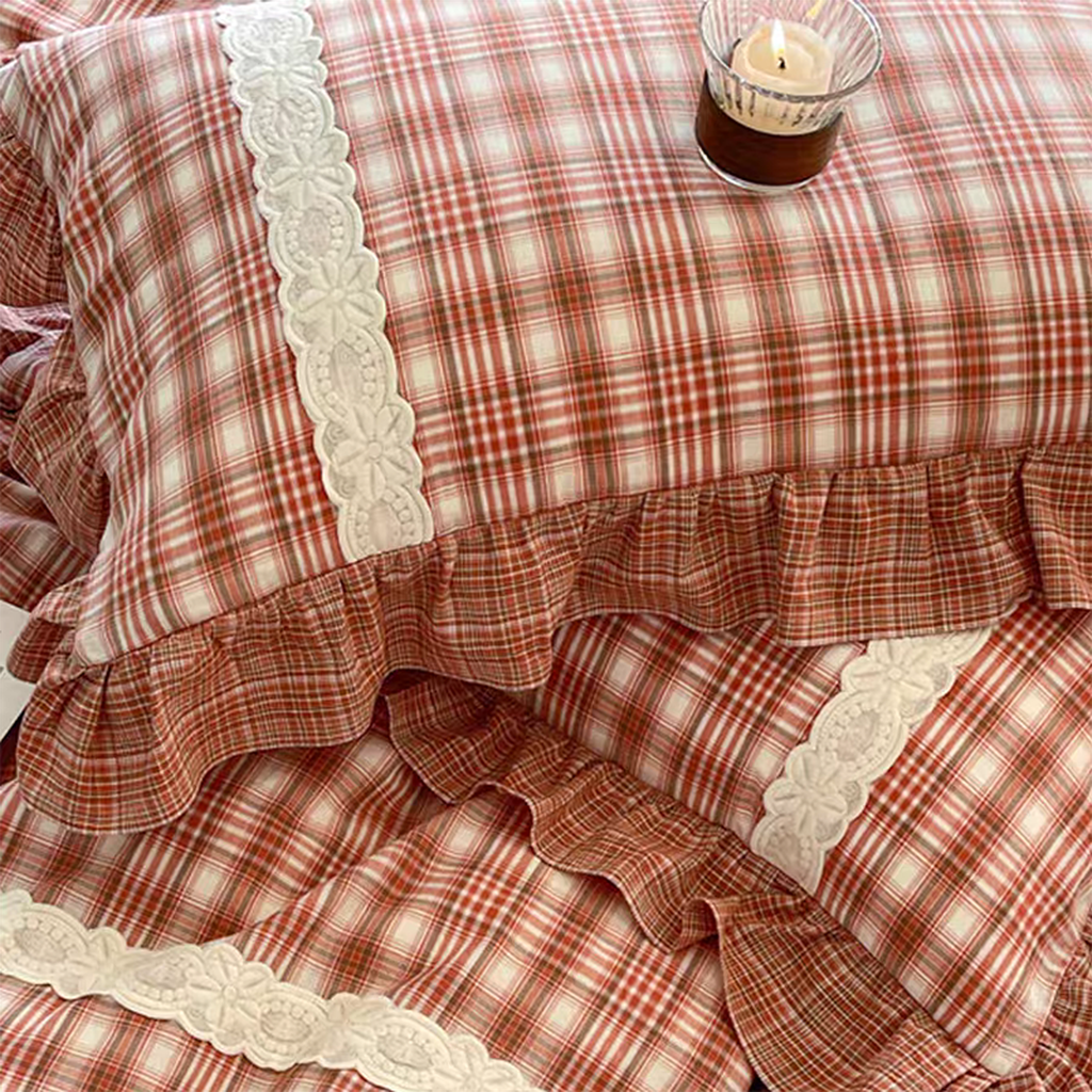 Our bedding set features a bold tartan plaid with the cutest ruffles. creating a warm and inviting atmosphere that will make your space feel like a snug retreat. The ruffled edges add a delightful touch of whimsy. If you like classic designs with a playful twist. you will fall in love with this bedding set.