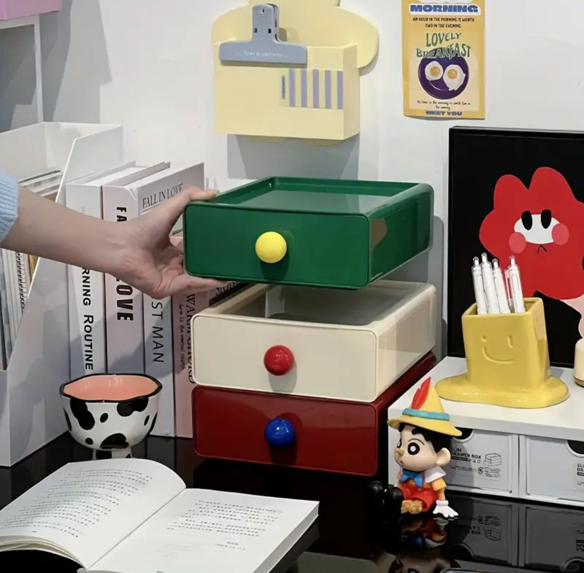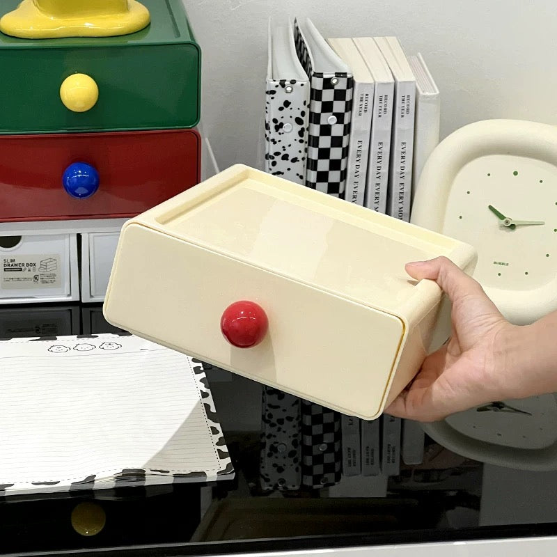 Declutter your workspace with the Retro Desktop Organizer with Drawer. a stylish and functional solution for organizing your office supplies. cosmetics. jewelry. and more. Inspired by retro and Danish pastel aesthetics. this stackable storage box is crafted from durable. waterproof plastic. making it a perfect addition to your desk. vanity. or home office. The 3-tier design with spacious drawers ensures easy access and visibility. keeping your essentials neat and accessible.