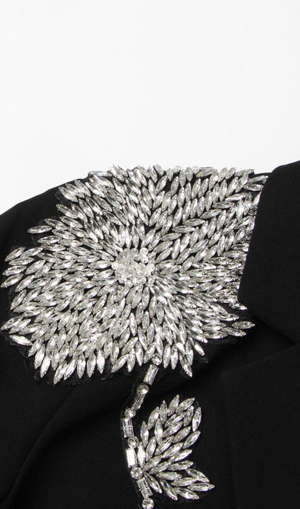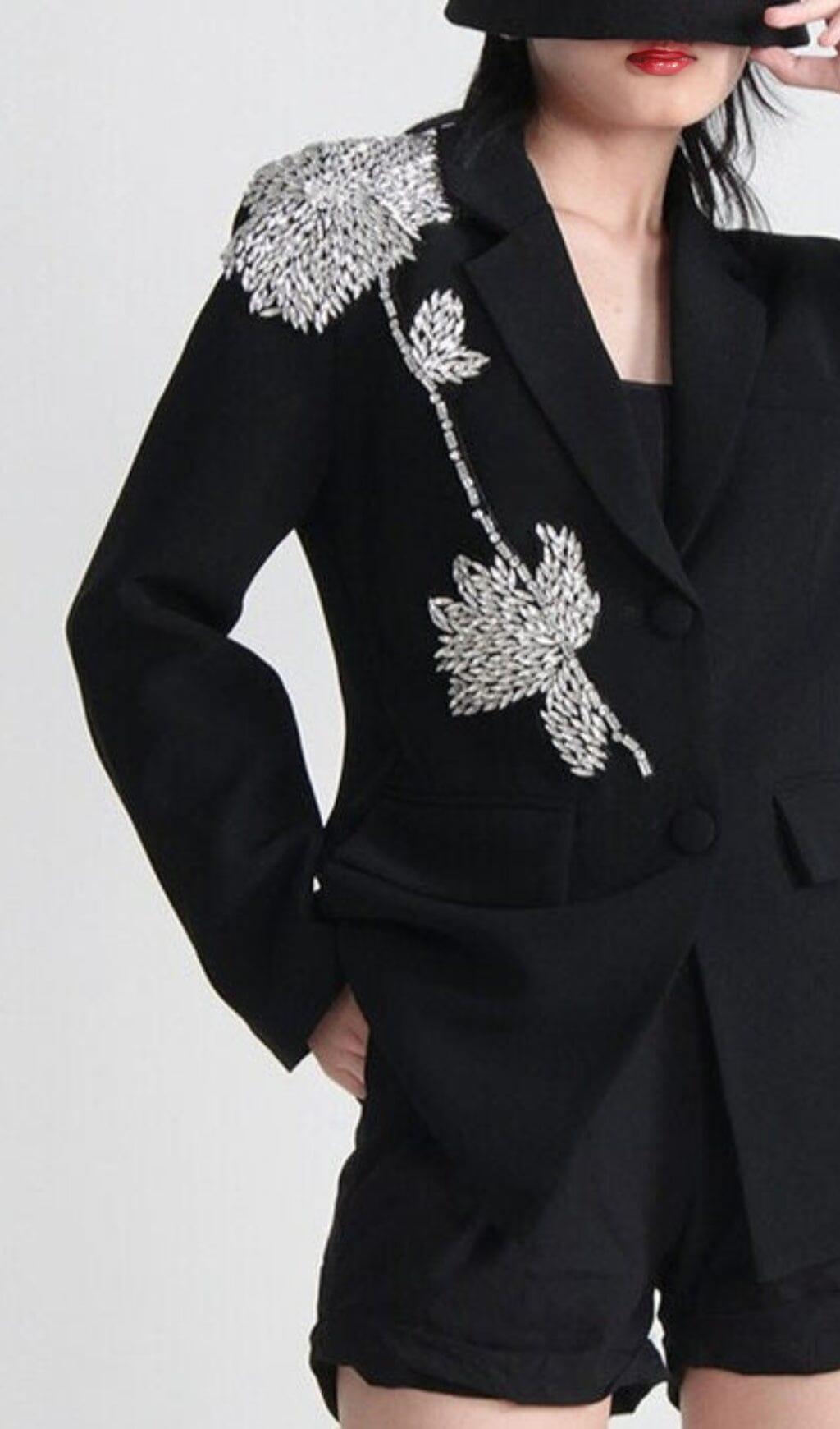 Don't settle for ordinary jackets when you can shine like a queen in our Rhinestone Detail Jacket in Black. Get ready to make a grand entrance and let the world be your stage!
