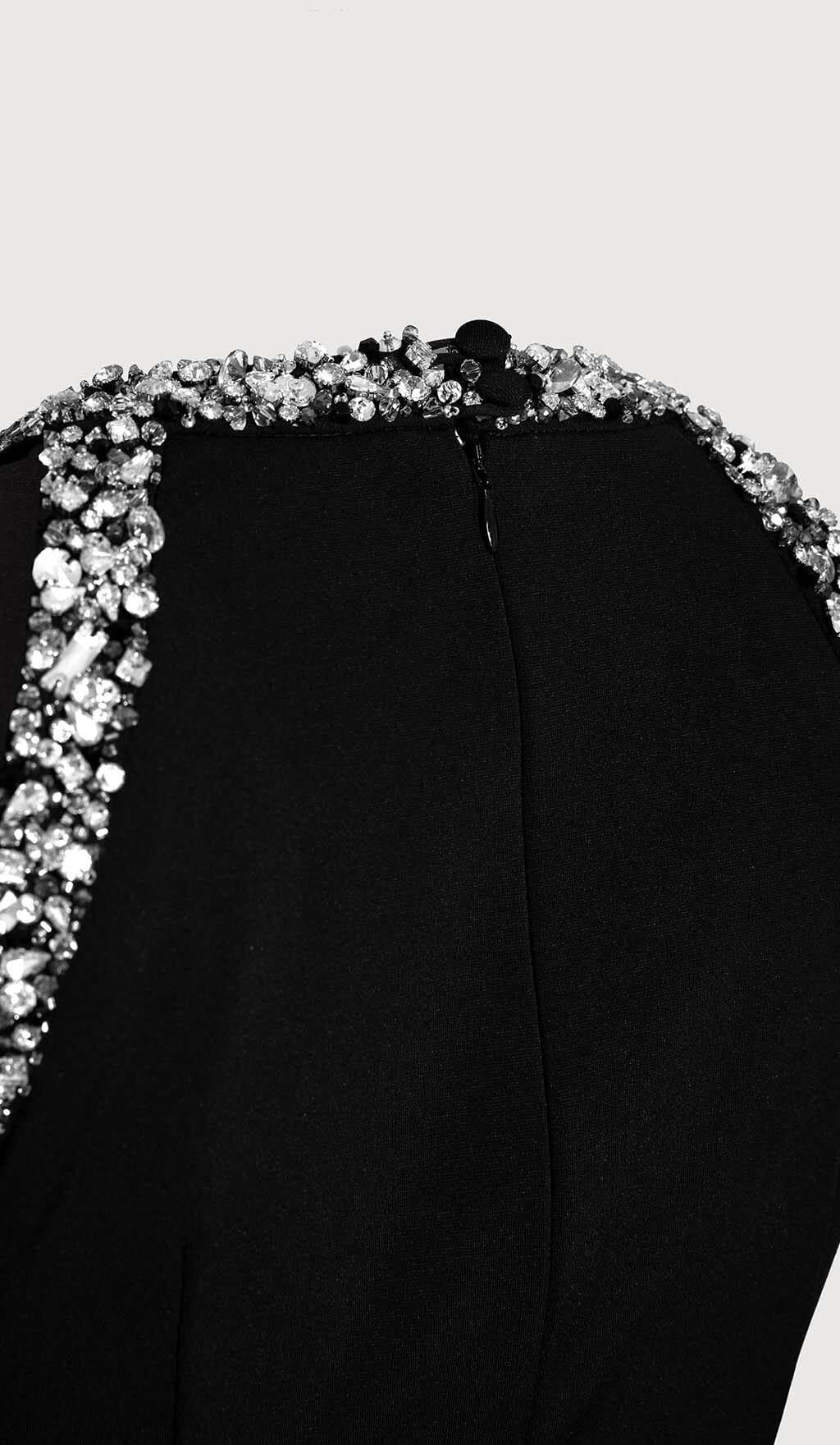 Turn heads and make a statement with our Rhinestone Embellished Sundress in Black. This stunning sundress is the perfect choice for any occasion. whether it's a summer party. a beach getaway. or a night out on the town. The combination of the black fabric and sparkly rhinestones creates a glamorous and eye-catching look that is sure to impress.