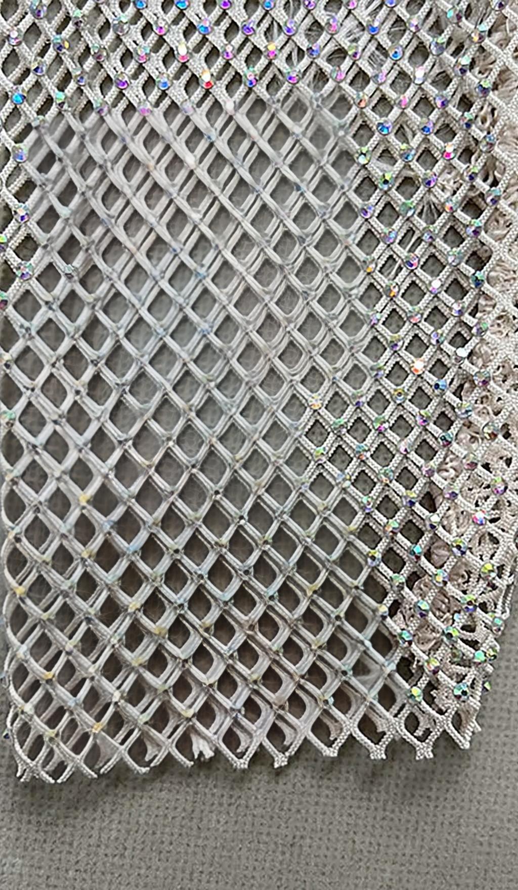The mesh fabric of this dress is not only stylish. but also lightweight and flattering. It drapes beautifully over your body. creating a flattering silhouette that will make you feel confident and sexy. The mini length adds a flirty touch. while the rhinestone detail adds just the right amount of sparkle.