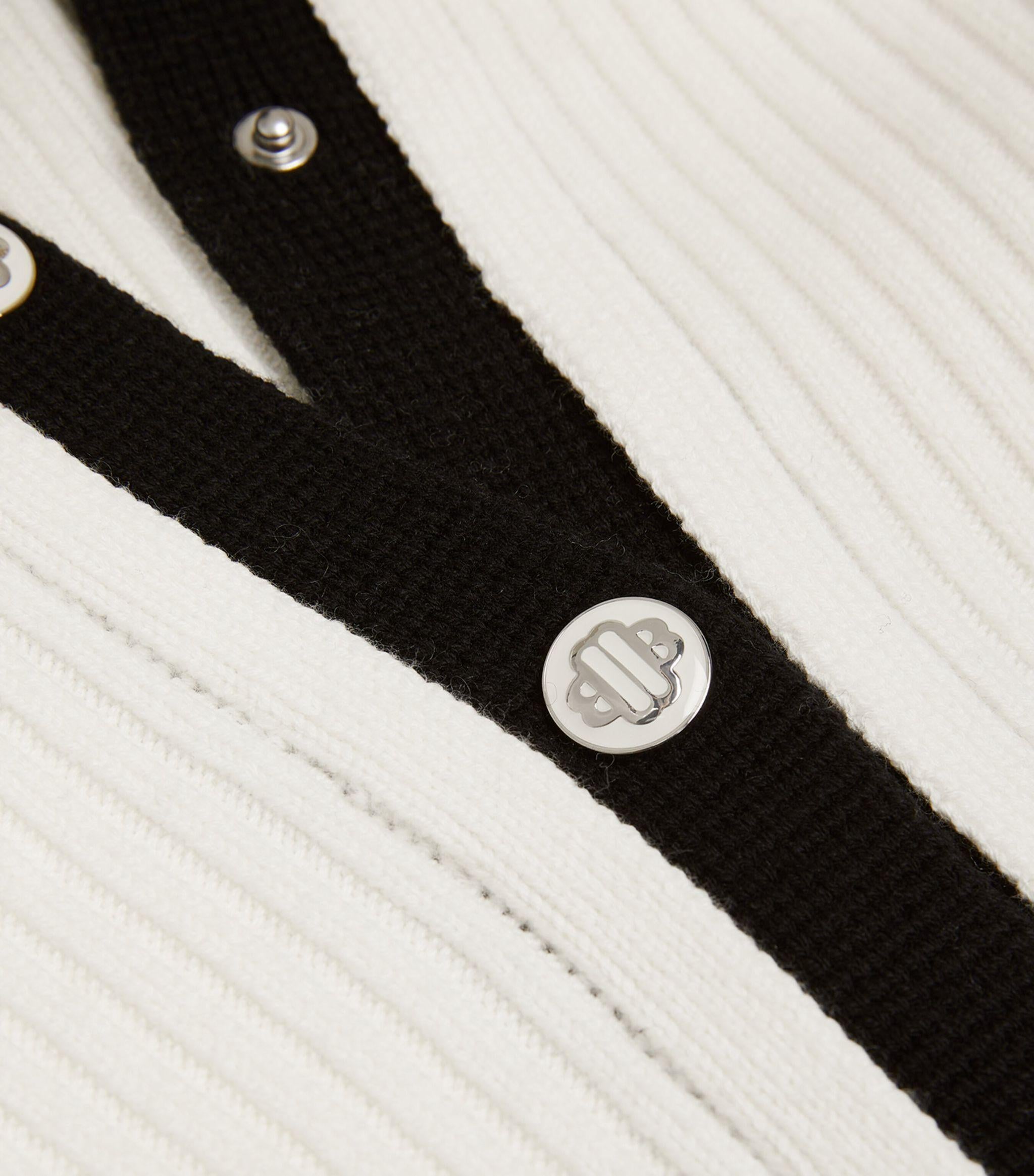 The ribbed texture adds subtle visual interest while the chain detail adds a touch of edge. Perfect for layering. this cardigan will keep you cozy and chic. Upgrade your wardrobe and turn heads with this must-have piece.