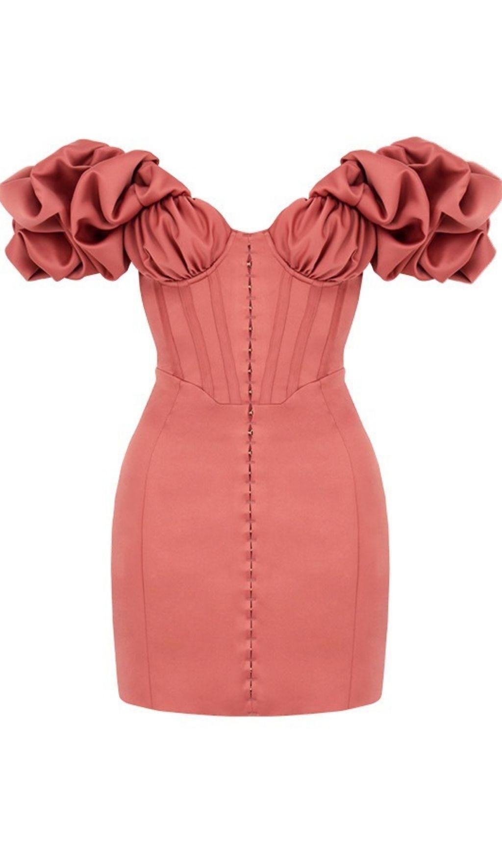 Pretty in pink. this dress is filled with romance and ruffles. making it simply incredible. Made from lustrous duchess satin. it features feminine detailing that sets it apart from the rest. The bodice has amazing corsetry boning that cinches the waist. creating the perfect hourglass silhouette. It hugs your curves to accentuate the hips and highlight your peach.
