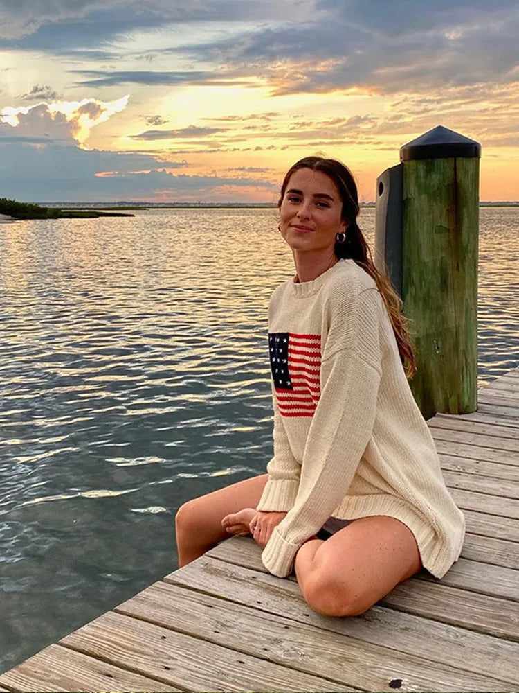 Round Neck Printed Knitted Loose Pattern Pullover Long Sleeve Sweater