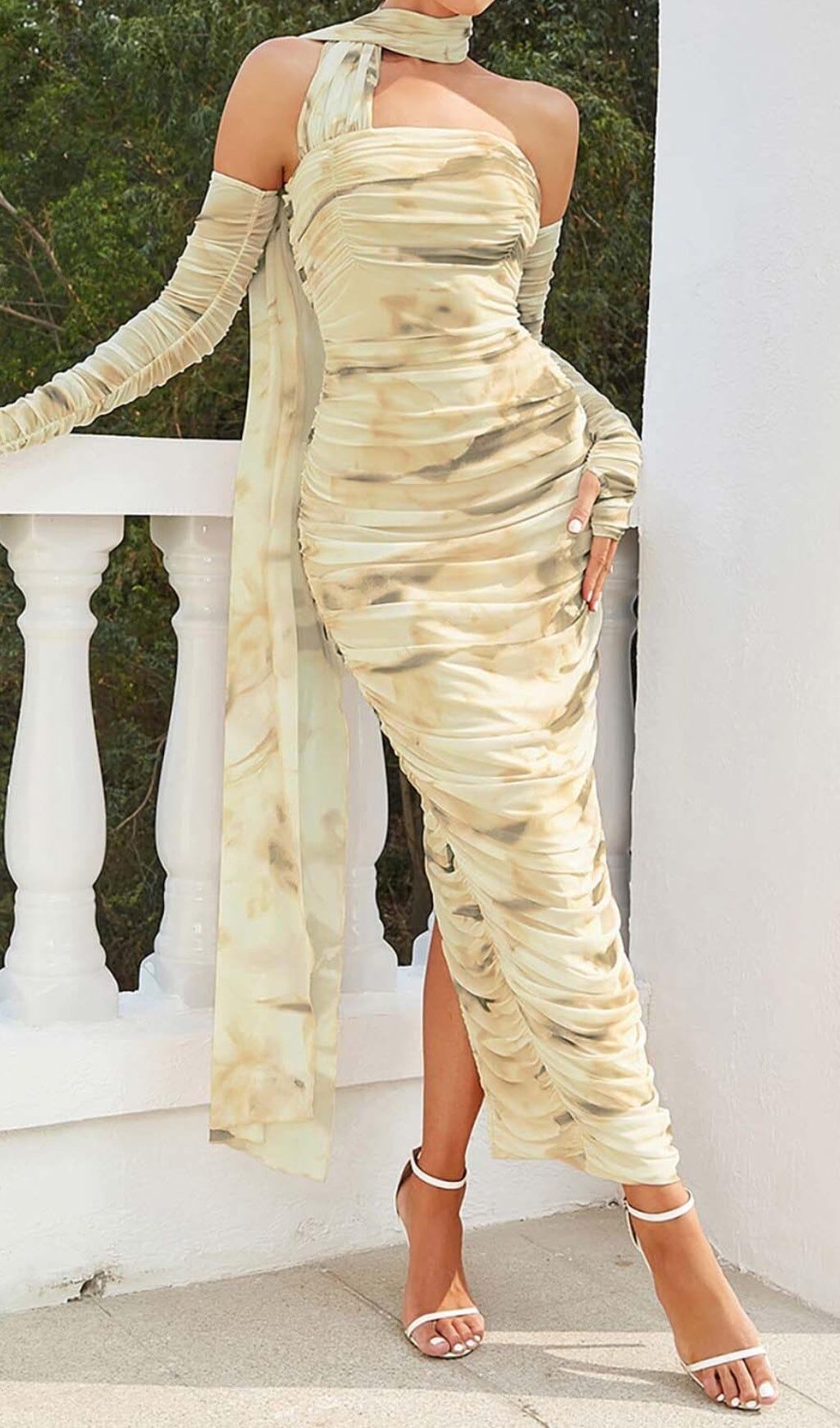 Whether you're attending a brunch. a cocktail party. or a romantic date. our Ruched Bandeau Midi Dress in Beige will make you the epitome of grace and style. So. slip into this dress and let your style whisper a tale of elegance!