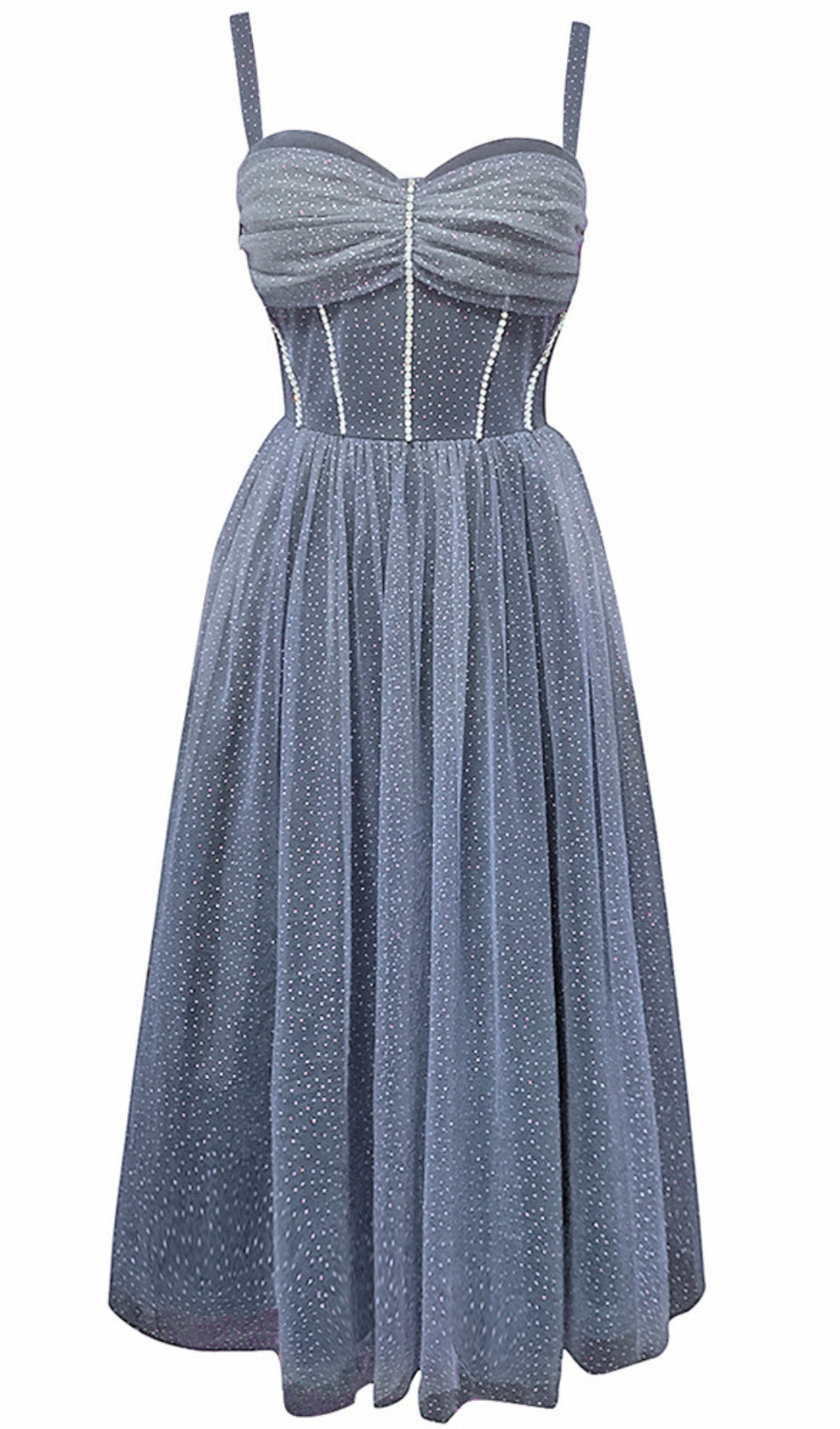 Take a risk and rock this statement dress! With a ruched bust. sparkling rhinestones. and sheer mesh. this cami dress will make you stand out in any crowd. Look bold and beautiful in this must-have piece.
