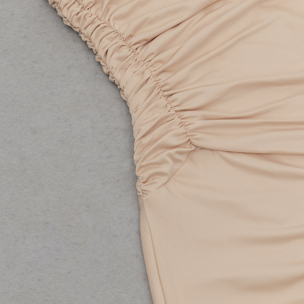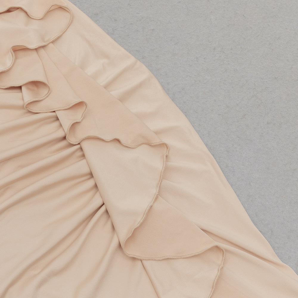 Introducing the Ruched Ruffles Split Bodycon Maxi Dress - the perfect blend of elegance and design. Made with expertly ruched and ruffled fabric. this dress flatters your silhouette and effortlessly adds a touch of glamour to your look. Perfect for formal events. weddings. or a night out.