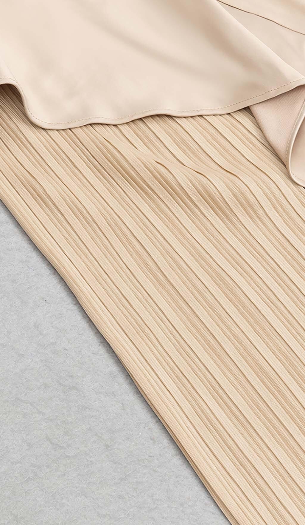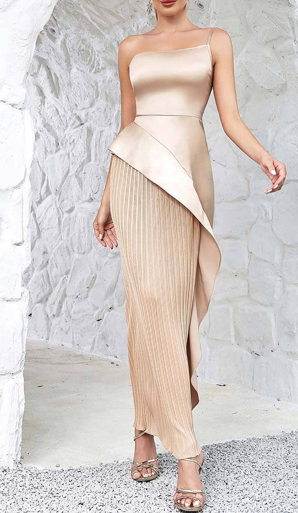 Don't miss out on this must-have addition to your summer wardrobe. Order your Ruffled Plated Maxi Dress in Khaki today and experience the perfect blend of style. comfort. and versatility.