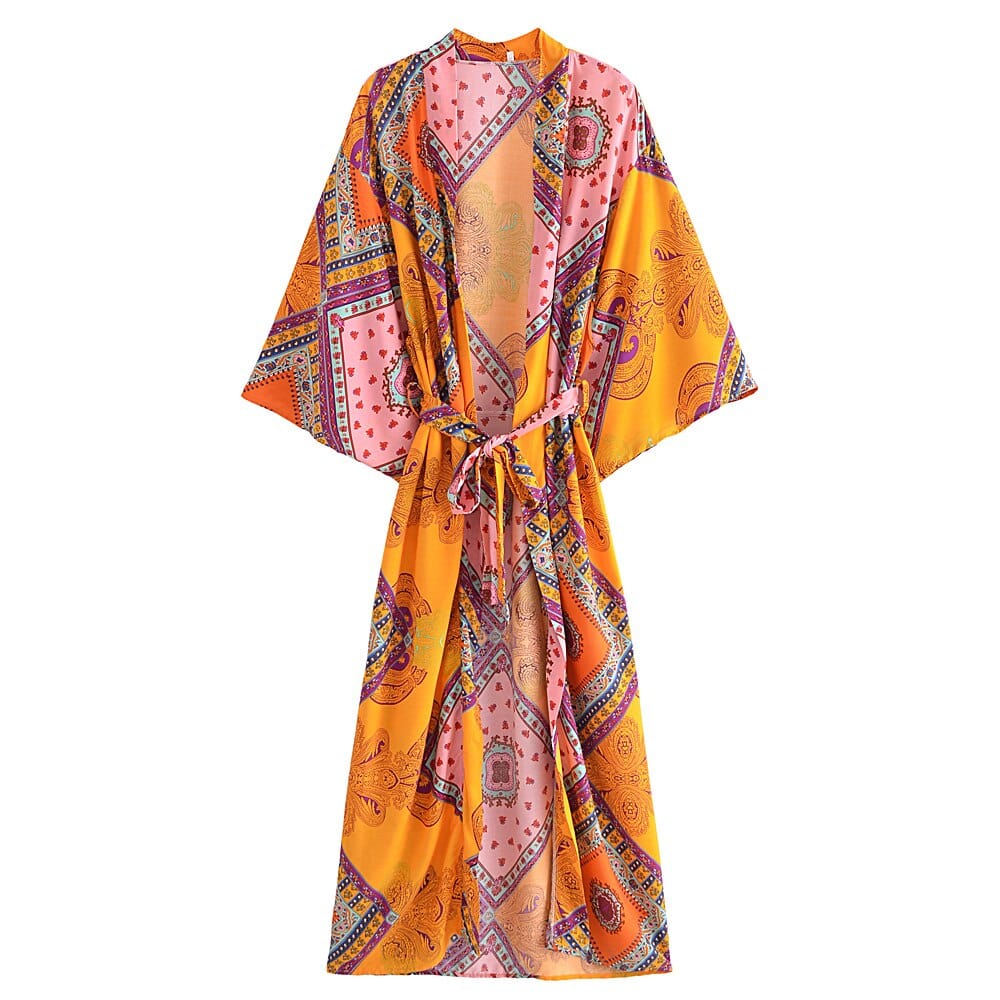 Energize your look by wearing our Sadie Boho Kimono! Its bohemian print adds an original touch to your outfit. With its light fabric and loose fit. it can easily be worn over your everyday outfits.