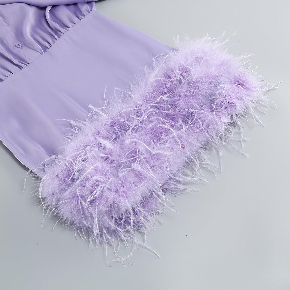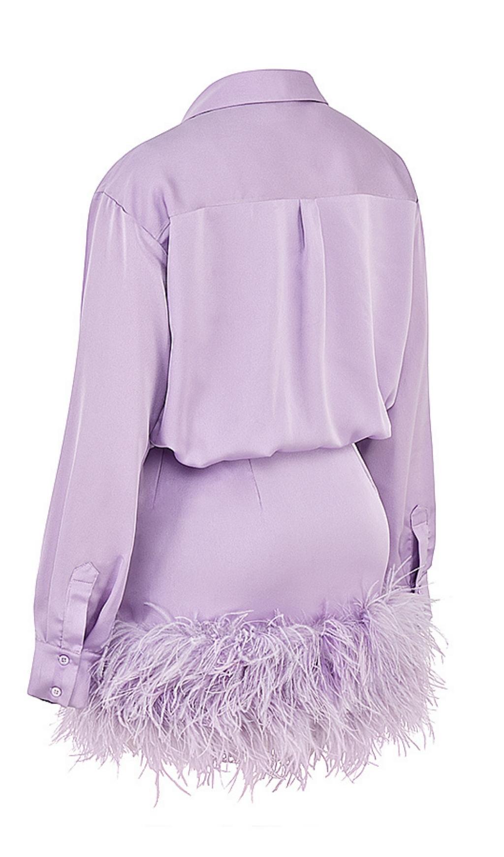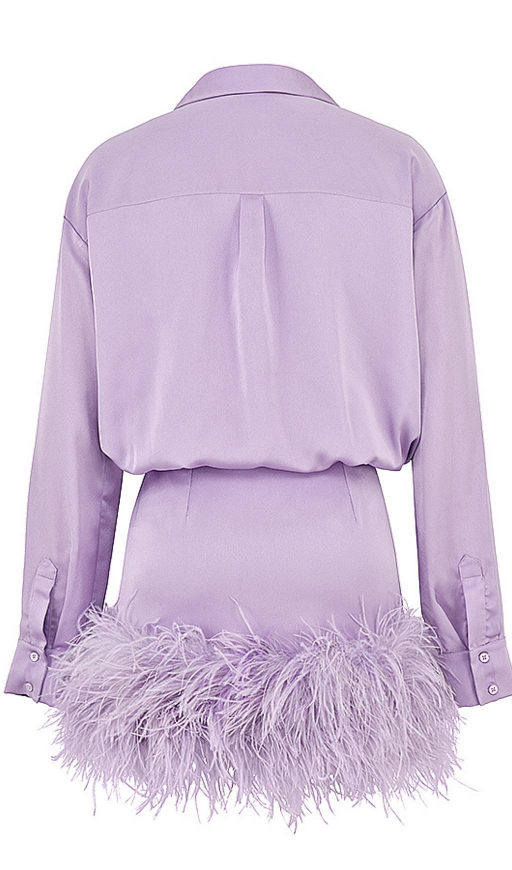 SATIN FEATHER SHIRT DRESS IN PURPLE