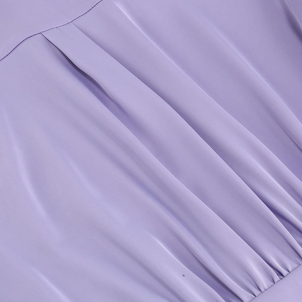 Don't miss out on this must-have Satin Feather Shirt Dress in Purple. Feel confident. elegant. and alluring with this dress that will make you shine at any event.