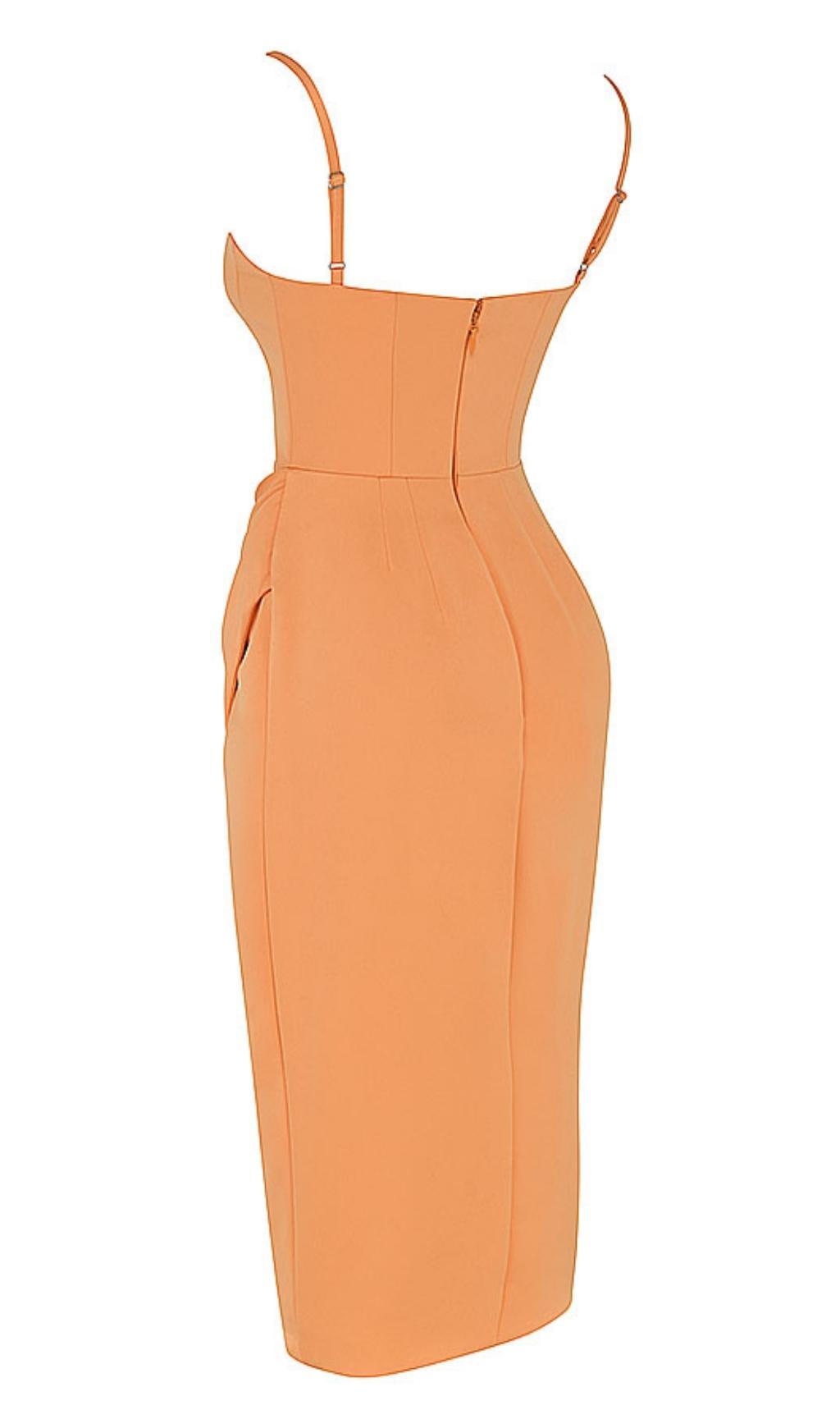 If you want to be a sexier. more attractive woman. check out our Satin Midi Dress in Orange. Made with high-quality satin fabric. this dress is designed to make you feel confident and beautiful. The waist-in design shows off your beautiful figure. while the vibrant orange color adds a touch of intellectual and elegant style. The asymmetrical design makes the whole dress more unique and eye-catching. Whether you're going for a romantic dinner date. champagne with the girls. or a night out at a cocktail bar or party. this dress is perfect for any occasion.