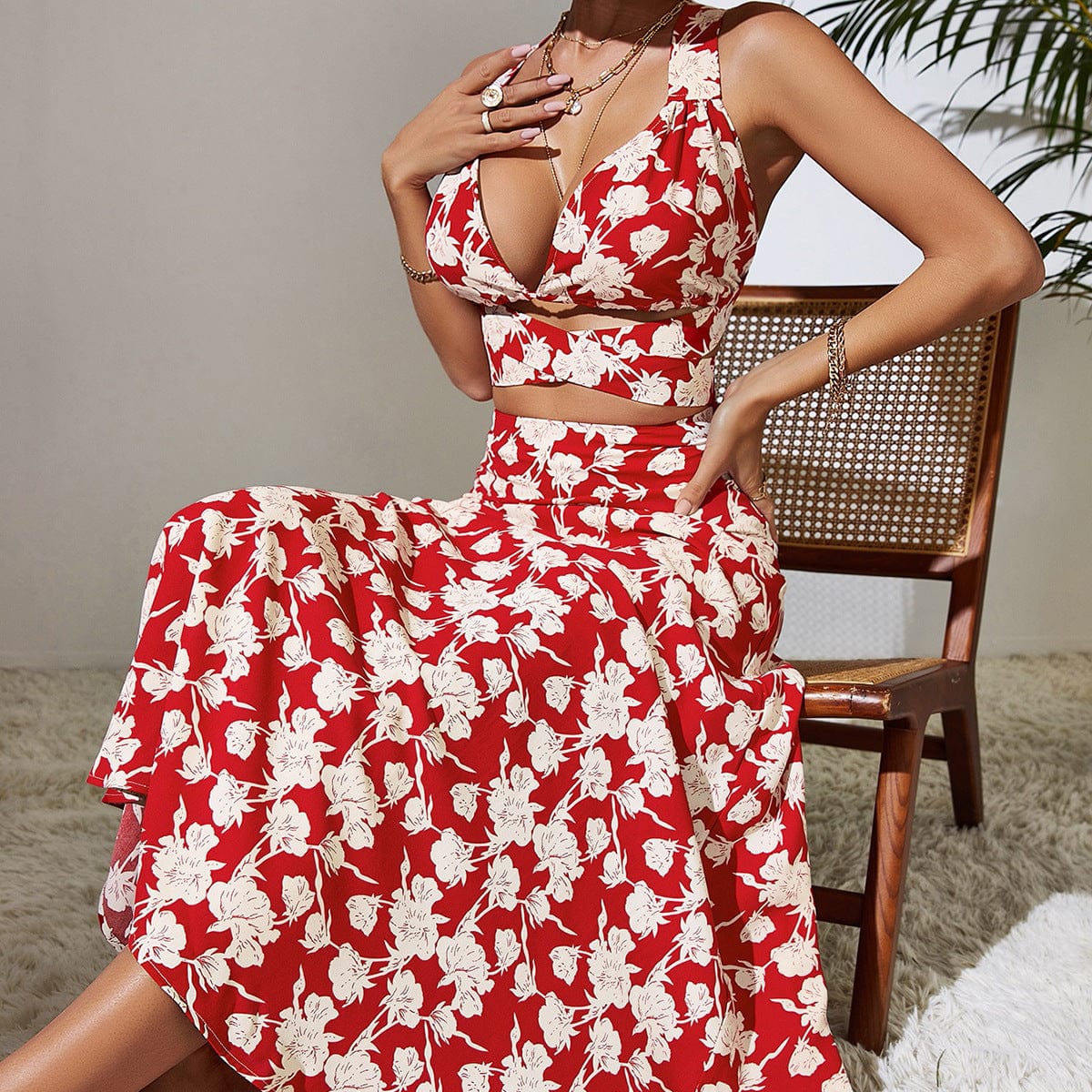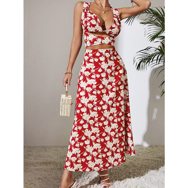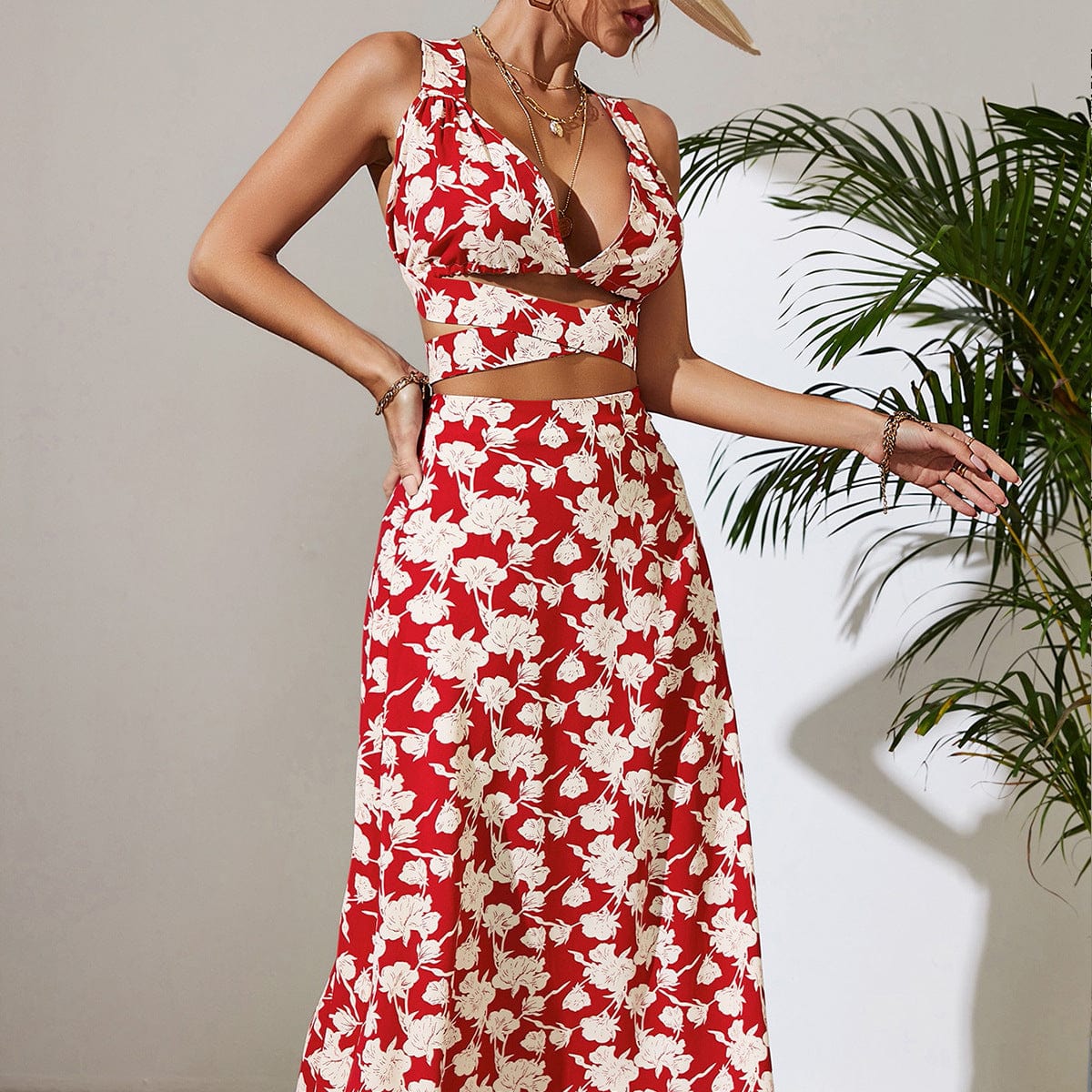 Be an instant show stopper in our Scarlet High Waist Maxi Dress! Embrace your inner boho goddess in this enchantingly bright floral number featuring a V-neck neckline. an alluring cutout. and an adjustable tie at the waist. Perfect for brunch or a night on the town! (Seriously. you'll look hawt!)