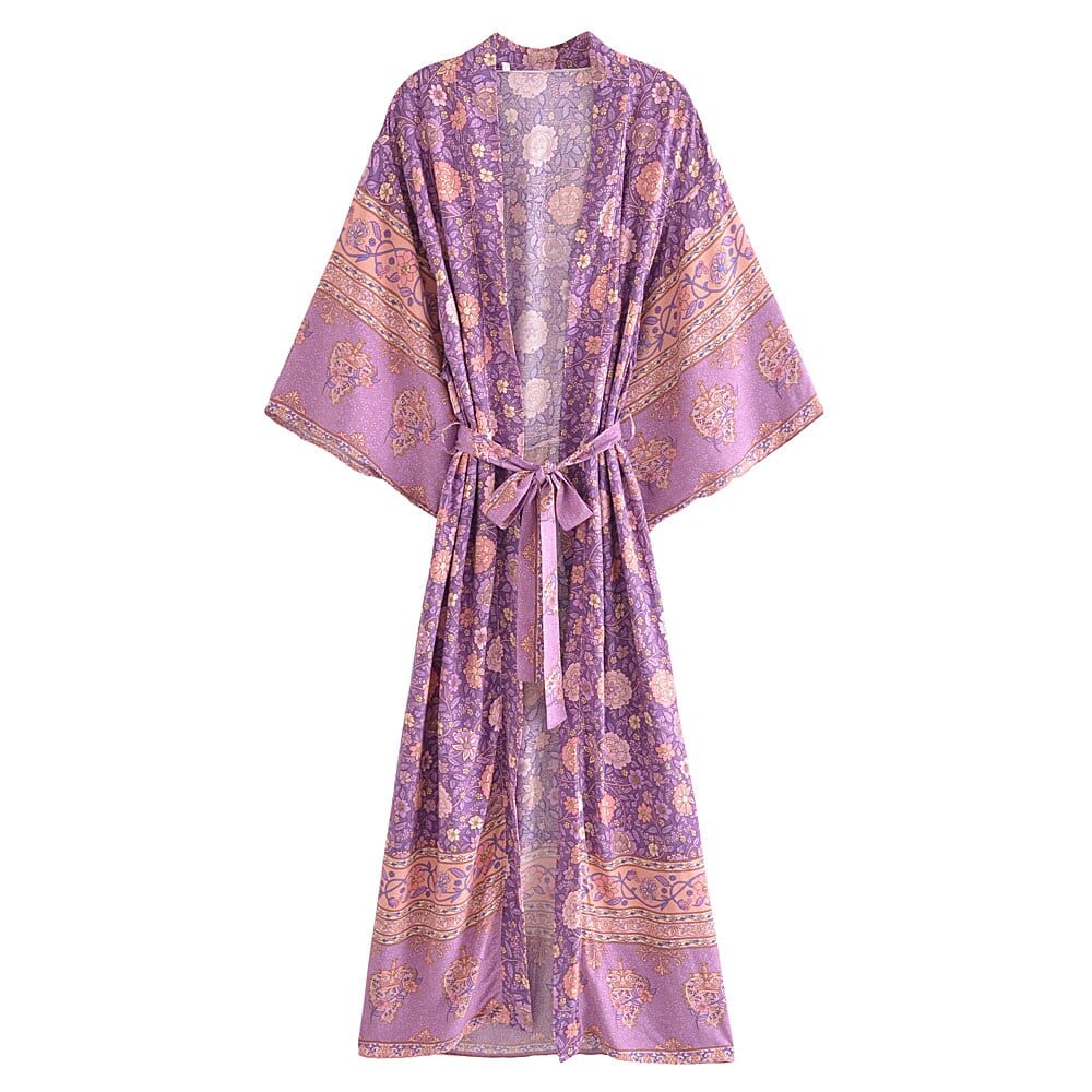 The Selene Boho Kimono is a must-have piece of the bohemian style. This Selene Boho Kimono fits remarkably well in the boho spirit thanks to its exotic look. its vegetal patterns. and its flowing fit.