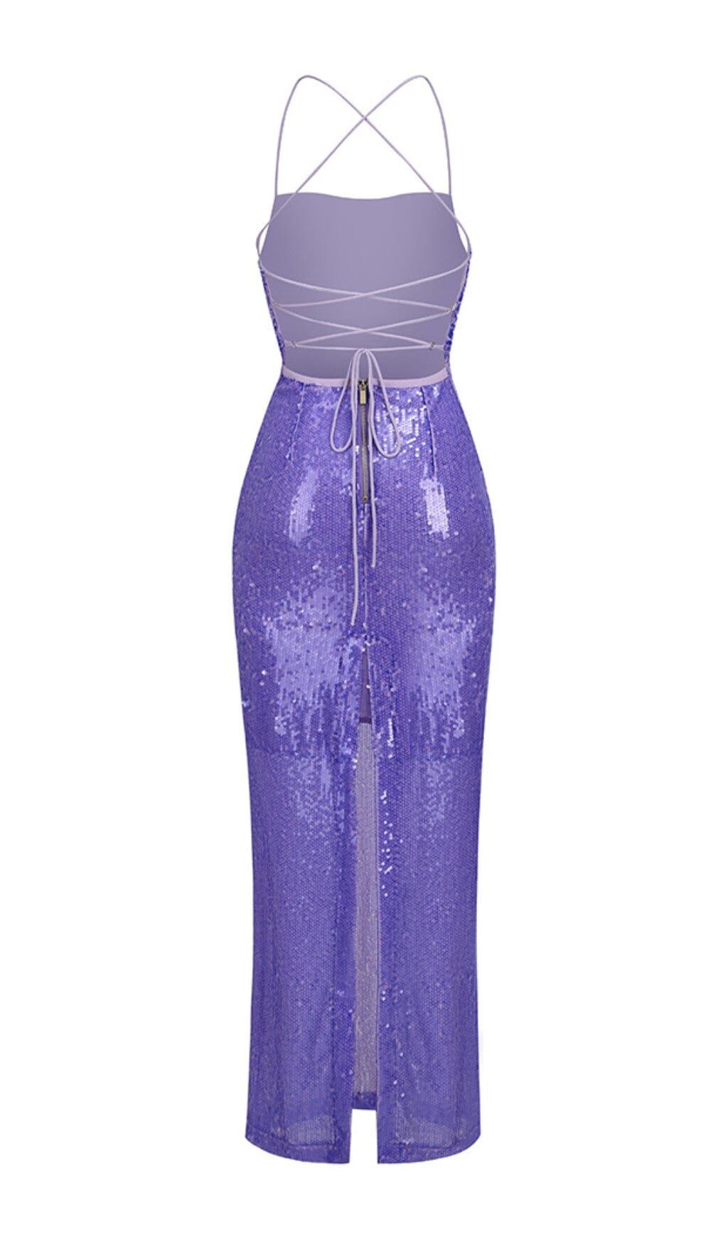 Make a lasting impression and feel like a true fashionista with the Sequin Backless Maxi Dress in Purple. Order yours today and get ready to shine!