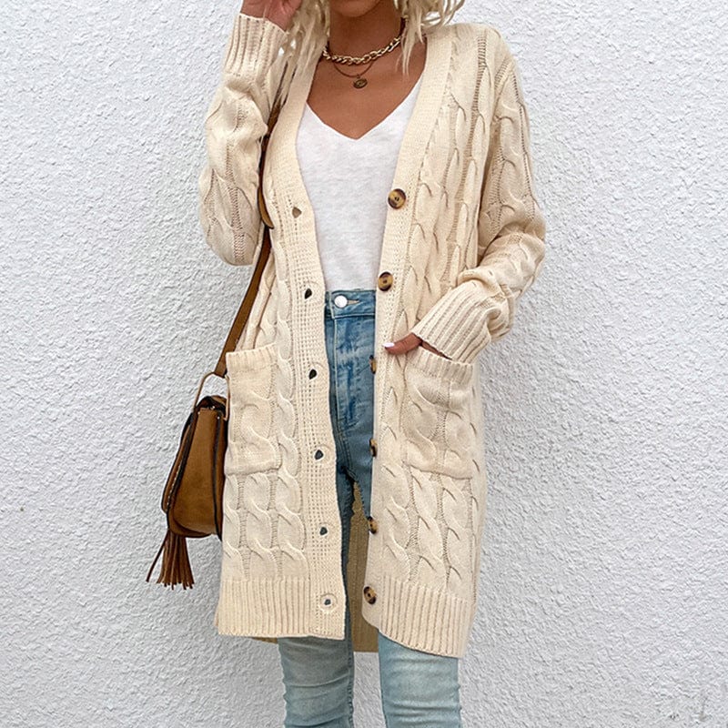 Layer on a touch of coziness with the trend-savvy Serenith Knitted Long Cardigan! Made with comfy jersey fabric and featuring a slim fit. long length. and raglan sleeves. this single-breasted cardigan is sure to keep you snuggly all season long. Plus. crafted with plush acrylic fiber. you won't have to sacrifice style for warmth!