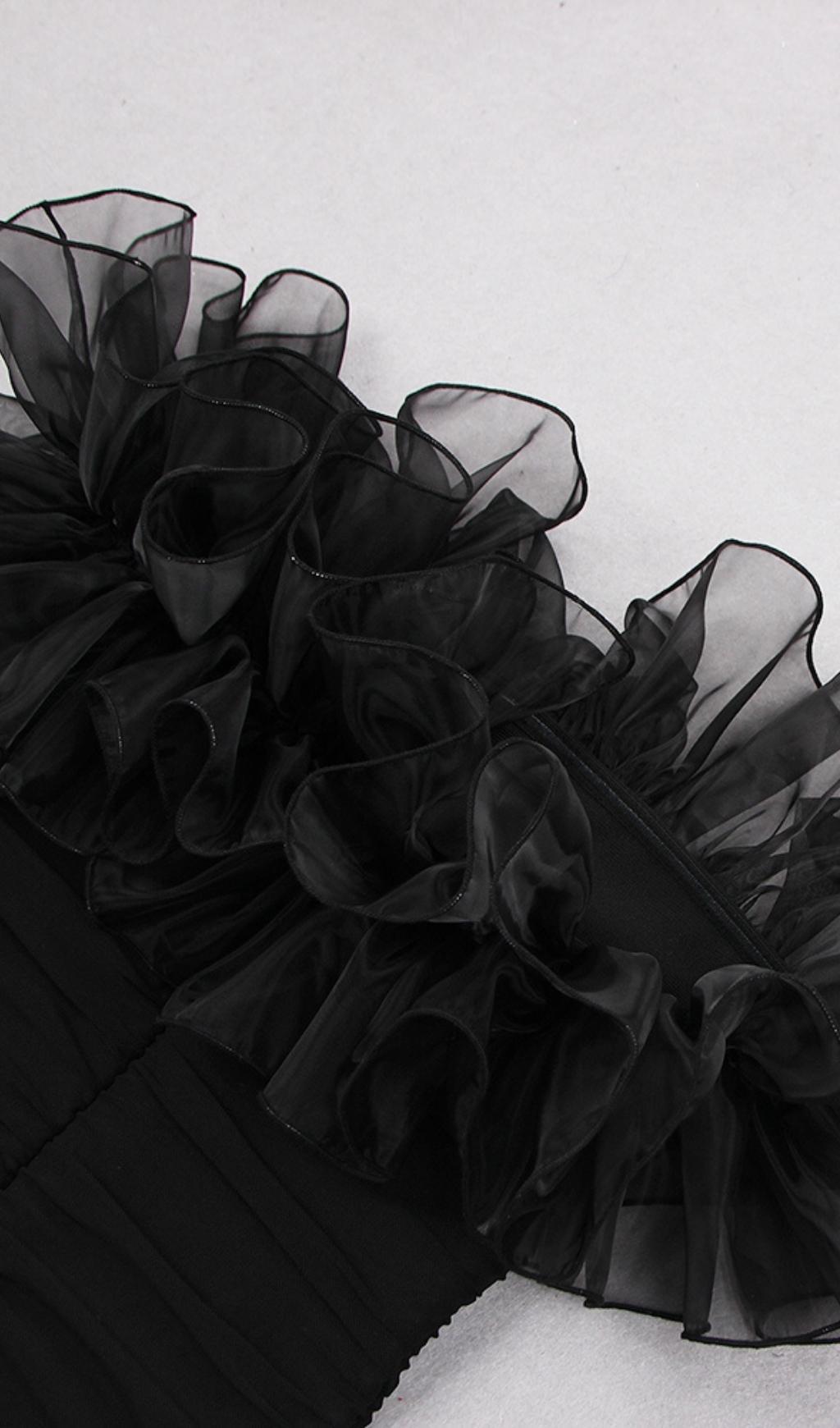 Our Strapless Lace Flower Mini Dress in Black is perfect for various occasions:
