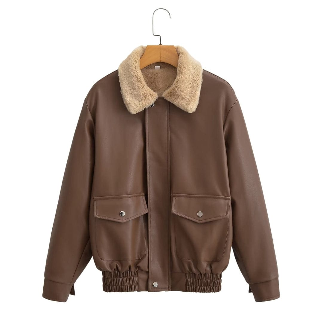 This luxurious Shearling Biker Leather Jacket is crafted from true-to-touch faux leather with a cozy shearling collar for a fashionable finish. Enjoy maximum comfort and protection wherever you go.