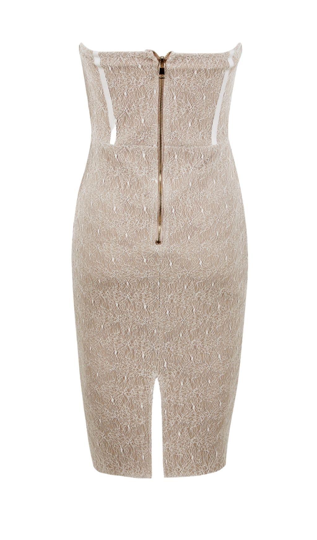 Choose the WHIRE LACE CROSET DRESS for a dress that combines elegance. style. and comfort. With its curved neckline. cinched waist. and unique mesh texture. this dress is perfect for any glamorous event or special occasion. The convenient zipper on the back allows for easy slipping on and off. while the small slit at the hem adds an extra touch of style. Made from high-quality materials. this dress is designed to last. It runs true to size based on our size chart. ensuring the perfect fit. Stand out from the crowd and make a statement with the WHIRE LACE CROSET DRESS.
