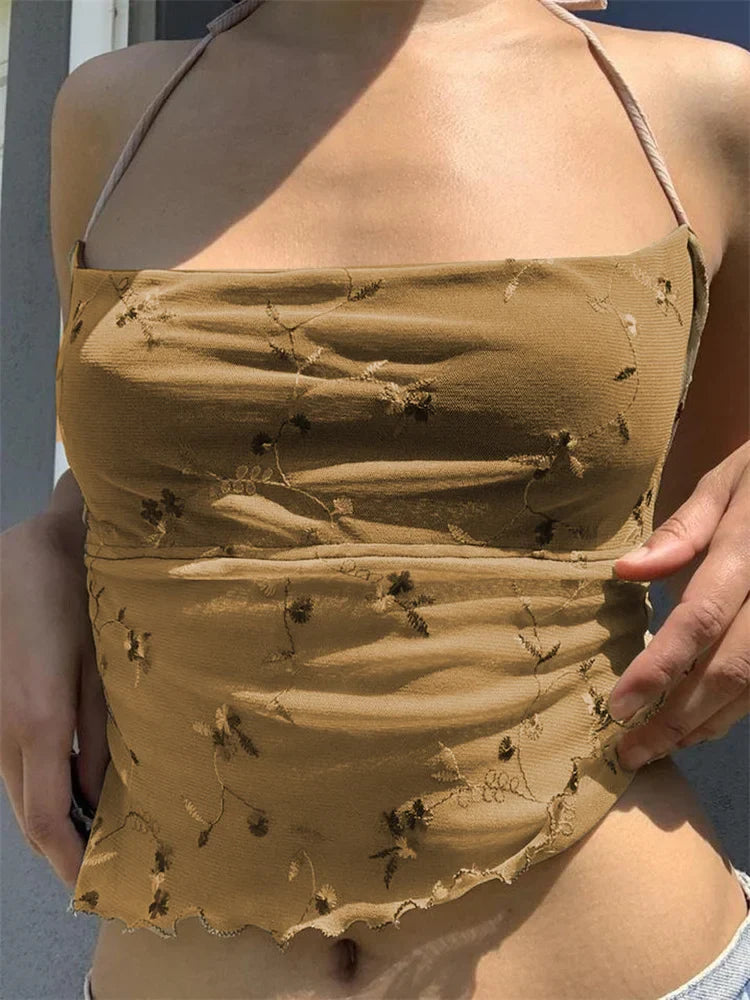 Sleeveless Halter Lace-up Camis for Square Neck Floral Backless Tank Irregular Hem Mini Vest Crop Tops